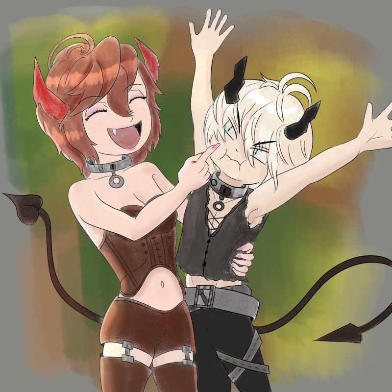堕天使女体化サンダルフォンとオリジナルキャラクターアスモくん