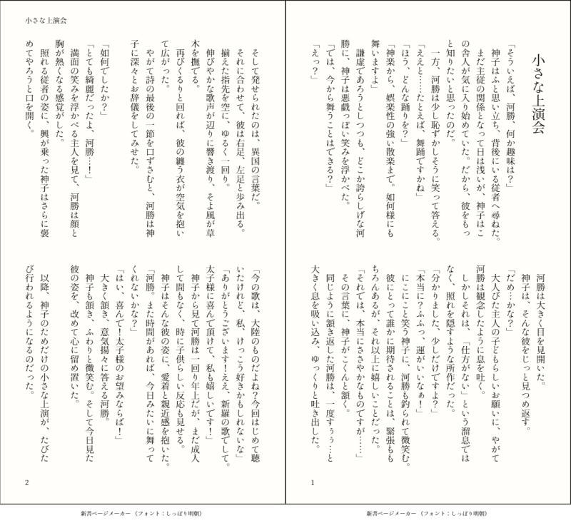 lasagna_rain☆quiet followDONE幼神子様にお願いされて、河勝♀が踊るだけの小話です。ほのぼのとしたものが書きたかった。 ##歴史創作 ##ほのぼのあすか Tap to full screen (size:1235x1132).Repost is prohibited lasagna_rainDOODLE多分まとめていない気がするやつとか、気に入っているやつとか……適当にぶっこんでやったぜッ!ヘッヘッヘッヘェ~~~ッ!健全ですが、色々と閲覧注意です。 24 lasagna_rainDONE河勝♀と守屋がお喋りするだけの、ほのぼのギャグ小話です。思いつきで書いたものなので、出来も含めて割と恥ずかしい。でも投稿する。 3 lasagna_rainDONE赤檮が名もなき男の指をもぎもぎする話。拷問シーンなど痛々しい描写があるので、苦手な方は注意!時系列的には、丁未の乱後、秦氏の族長になった河勝と、河勝の父である丹照が内紛状態にある頃です。 3 lasagna_rainDONE歴史創作絵まとめ~その5~相変わらずの河勝♀率。あとは兄上が多めな気がします。河勝殿はかわいいですね…… 21 lasagna_rainDONE歴史創作×東方キャラ早見表と相関図です。紹介文は適当なので、真に受けないでね! 4 lasagna_rainDONE赤檮が故郷である鳥見村に帰ってみようとする話です。弓に関してですが、鳥見族の弓がどうこうというのは私の完全な妄想です。アイヌの弓や縄文時代あたりの弓をイメージしています。膠で素材をくっつけるような合成弓は、日本の多湿な風土には合わないのですが、赤檮……もとい長髄彦は、和弓よりも自分たちの弓の方が良いと信じているようです。 3 recommended works 天嗣さんるDONEカルダー🗡️🐙ダーリア流✨ 𝟠𝟚𝟙DOODLE映画と全く関係ない千宮路大和ゲームを引っ張り出してプレイしてたら千宮路と四川堂(映画に出てたキャラ)の苗字がごっちゃになったので自戒どちらの苗字も高貴そう(個人の感想) kona_mnDONEりくいお新刊サンプル(2ページ)サンプル繋がっていません。※1枚目は騎乗位のシーンです。当日は年齢確認にご協力お願いいたします。 2 nontsubuDOODLE”可及的速やかにお引き取りください” 3 TT_Rex_SoloDONE2025/1/10今日は物凄く寒く、雪が降る地域が多いと聞いて書いてみました。諸旬 犬旬 黒旬 白旬 最旬 美旬腐っぽい表現もありますが多少は伏せてるので愛されな感じに見えるようにしました。(たぶん)です。良ければ栄養補給してください!!! 2815 TT_Rex_SoloDOODLE追加の道旬です腐要素はありませんが… 547 ぴっぴ太郎実頼DOODLE利吉さんのとりこになってしまった、、、仙蔵も好き♡厳禁トリオかわゆ! 4 卓の記録たちDOODLE⚠️ネタバレデ死 げんみ❌ CcTigerKingDOODLE💜のパイスー💛の妄想後は💜💛のパイスー🔞も描きます(時間あれば🤯