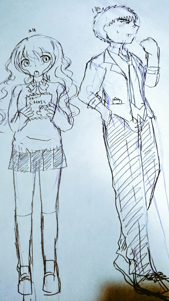 キャラデザは固まりつつあるけど、肝心なストーリーがまとまってなくて苦戦してます…三角関係要素はいれたい。前回より男の子マイルドにした。