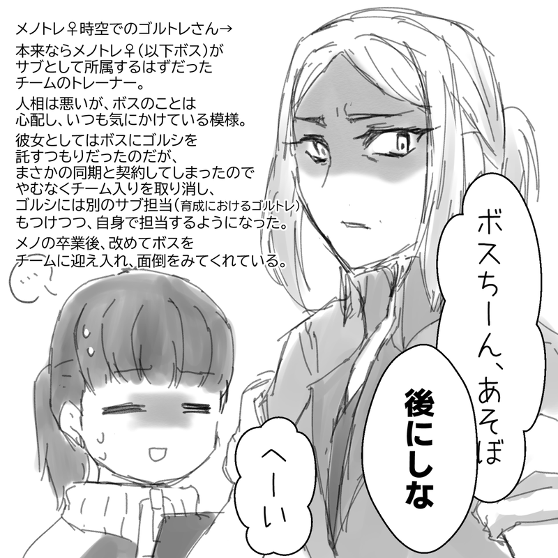 ランラ◆ウマ娘用☆quiet followDOODLE弊メノトレ♀時空におけるゴルトレさん。いい人ではあるが顔が厳ついので、生半可なウマ娘は逃げ出してしまうそう。 Tap to full screen (size:1398x1398).Repost is prohibited Let's send reactions! freqpopularsnackothersPayment processing Replies from the creator Follow creator you care about!☆quiet follow ランラ◆ウマ娘用DOODLEナカトレ♀シニアの一件がとても刺さっていて…… ランラ◆ウマ娘用MEMOうちのナカトレ♀さんようやく形が見えてきたメノやゴルシといい勝負のタッパ持ちで、ナカヤマとは良い相棒関係。メノトレ♀(ボス)とは母方の従姉妹契約前はだいぶ静かな性格だったが、キャラストでの出来事から肝が据わり育成ストーリーを通じて言葉通りの「剛胆」になった。ちなみに酒は枠 ランラ◆ウマ娘用DOODLEもちぷにをmnに堪能させたかっただけなんです ランラ◆ウマ娘用DOODLE※ほぼトレしかいないナカヤマのトレがなんとなくイメージできてきたのでなんか…描かねばと思ったら……瑣末な話:ボスが🚓+🚢扱いになっている理由弊mntr♀世界線だと🚢の担当はこの世界線におけるメイン第一部トレだったのが、🚓引退後から🚢に強請られて担当するようになった……という経緯があったり。 ランラ◆ウマ娘用DOODLE弊ジャニトレ♀の現役時代(契約したてくらい?)X年後にジャーニーへ「葬式の喪主をして」と最悪の求婚をするトレ♀ ランラ◆ウマ娘用PROGRESS実はまだ描いてるんですよというアピール recommended works iyowtiyotDOODLEdoc and mharti 2 あああDOODLE1220 16 2 インヨ少女DONE⚠️過去捏造 🐯『猛虎のトライン』🐯『맹호의 트라인』워터마크 제거 ver ウォーターマーク削除ver 5 krhpndsDOODLE微妙過ぎる差なんですけど、色味迷ったので両方置いておく 2 namaDONEうちのこまとめ3 6 meb56rDONE12/20 うれても冬展示作品。企画「ギフトトゥーユー!」に参加させていただきました🙌✨お題は「束縛×花束」です。現パロ宇煉💎🔥です!煉さんに束縛されたことがない、と気づいた宇さんが、その理由を尋ねる話。いちゃらぶしてます✨全6p➕L◯NE風が4枚です。パスワードは、店舗中央の水晶から飛んだリットリンクにあります。→パス外しました! 12 咕噜咕噜MEMO 3668 Yrk_gottaDONE1枚目:ウォーターマークなし2枚目:文字なし 2 KYOUBATE_DOODLE
