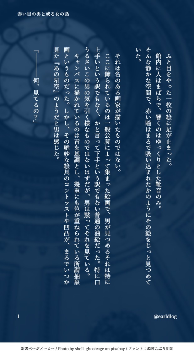 あーる☆quiet followDONE赤い目の男と或る女の話⚠️あるかもしれない一つの物語⚠️三次創作的な感覚で読んでください show hide show all(+5 images) Tap to full screen (size:618x1132).Repost is prohibited Let's send reactions! freqpopularsnackothersPayment processing Replies from the creator Follow creator you care about!☆quiet follow あーるDONEその声が呼ぶ限り【購入者特典:聖夜前】購入者特典の閲覧にはパスワードが必要です。パスワードは「その声が呼ぶ限り-完全版-」の奥付をご確認いただき、奥付に記載されている以下の文字を繋げてご入力ください。 ●「サークル名(半角英数字)」 ●「発行日(数字4桁)※西暦は不要」 例)Abcde0123購入者様に限り、どうしても分からない等、なにかありましたら直接ご連絡ください。 16 あーるDONE特異点の金女主(ver.2024)⚠️金女主/FGO/クロスオーバー⚠️なんでも許せる方のみご覧ください 9 あーるDONE赤い目の男と或る女の話⚠️あるかもしれない一つの物語⚠️三次創作的な感覚で読んでください 6 あーるDONEOnly the stars know【番外編】赤い目の男が10年バズーカを撃つ話(前編)本文:あーる@earldlog挿絵:伊森@ineed_ea⚠金女主×REBORN!ネタのお話⚠R15(匂わせる表現あり)⚠なんでも許せる人向け 7 あーるDONEOnly the stars know【エピローグ】「白野と赤い目の男のそれからの話」本文:あーる@earldlog挿絵:伊森@ineed_ea⚠金女主⚠SN時空/クロスオーバー/捏造あり⚠なんでも許せる方のみ自己責任でご覧ください 20 あーるDONEOnly the stars know【第25話】「高2白野と赤い目の男の最後の話」本文:あーる@earldlog挿絵:伊森@ineed_ea⚠金女主⚠SN時空/クロスオーバー/捏造あり⚠なんでも許せる方のみ自己責任でご覧ください 23