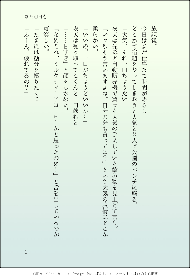 umi☆quiet followDOODLE放課後の公園にいる大気と夜天SS大夜 #夜天光 show all(+1 images) Tap to full screen (size:630x928).Repost is prohibited Let's send reactions! freqpopularsnackothersPayment processing Replies from the creator Follow creator you care about!☆quiet follow umiDOODLEpixivにあげた「星にいちばん近い場所」の最初のバージョン。最初は短編用に書いていたものでした。観覧車で心も体も距離が近付いていく大気と夜天が書きたくて。夜天が可愛すぎて珍しく自分でドキドキしました。このあともたびたび来るようになるといいな観覧車。 3 umiTRAINING大夜R18。雰囲気っぽいものだけど苦手な方はご注意を。短い。 umiDOODLE支部に投稿したなつごおりの別バージョン星夜。珍しくいちゃつきがちな星野と夜天 3 umiDOODLE眠る時はスターライツだと可愛いし、ヒーラーが夜天の時より素直だとなお良い。百合ライツ可愛い。 2 umiDOODLE6月28日はパフェの日ときいて。パフェの日の星野と夜天SS。本編では食べてるシーンの少ないライツだけどおいしいものいっぱい食べてほしいな。 4 umiMOURNING大夜か大ヒかメイヒ。敬語の言葉責めお題メーカーのお題をお借りしました。可愛い夜天くんがいっぱい愛されてる話が書きたい!と一度こっそり書きたくて。エロになるとキャラを維持するのが難しいのと、全然中身のない設定崩壊なお話になったのでなんでも許せる方向けです。そのうち消すかも…。2人とも本当はもっとしっかりした良い子だよ…!ごめん…! 2205 related works umiDOODLE夜天とパーラークラウン。なんだかんだ星野と大気は置いていかれるのはイヤなの、可愛いと思います。大夜…? umiDOODLE相合い傘する星野と夜天星夜 umiDOODLE夜空を見上げる3人。いちばん最初に書いたSS。夜天には2人が必要だし、2人には夜天が必要なのでそんなライツの絆が好き。大夜 星夜 umiDOODLEpixivにあげた「星にいちばん近い場所」の最初のバージョン。最初は短編用に書いていたものでした。観覧車で心も体も距離が近付いていく大気と夜天が書きたくて。夜天が可愛すぎて珍しく自分でドキドキしました。このあともたびたび来るようになるといいな観覧車。 3 umiDOODLE放課後の公園にいる大気と夜天SS大夜 2 umiDOODLE支部に投稿したなつごおりの別バージョン星夜。珍しくいちゃつきがちな星野と夜天 3 umiTRAINING大夜R18。雰囲気っぽいものだけど苦手な方はご注意を。短い。 umiDOODLE眠る時はスターライツだと可愛いし、ヒーラーが夜天の時より素直だとなお良い。百合ライツ可愛い。 2 recommended works むーんDONE9周年の文字なしと線画背景をぽちぽちぺたぺた塗ってるときも楽しかったです!てきとーだけど笑8周年のピンク!て感じも好きだけど9周年の青系の色味もとても好き 2 moehmokoDOODLE🔞サンロビ兄妹のスケベです18↑??yes/no 4632_stellaDOODLEサイレン HO1秘匿あれば⭕️その他げんみ❌ 2 deji_akuronDOODLE落書きちょぎにゃん髪の毛かきあげちょを描きたかった。(またかきあげてる・・・邪魔なのか?)とおもって、後日ヘアバンドプレゼントするけど、同衾の時しか髪の毛かきあげませんよ?なちょ。 それに気がついて、顔真っ赤にするにゃ。ヘアバンドしたままヤったら、にゃんが笑ってしまう事件も発生し、ヘアバンドはタンスの中へw 黑坠星DOODLE小猫放尿 あいねDOODLE作業進捗∅(。。)マジで私にしては上手く描けてる気がする 中途覚醒MEMO【恐怖!怪奇!実録!人喰い廃墟!に行ってみたw】今日の卓楽しみ過ぎて『4K放送部』のチャンネル待機画面的なのを作った👻メンカラ入れて可愛くしてみました✨ライブ配信今日から頑張っていこ~📢 5satuki1DOODLEVOID 現行未通過❌ 自陣❌ネタバレあり NPCメイン通過中 HO3 8 ebin_oosushiPROGRESS2/9のイベントで出る予定の出勝緊!縛本の進捗です 6