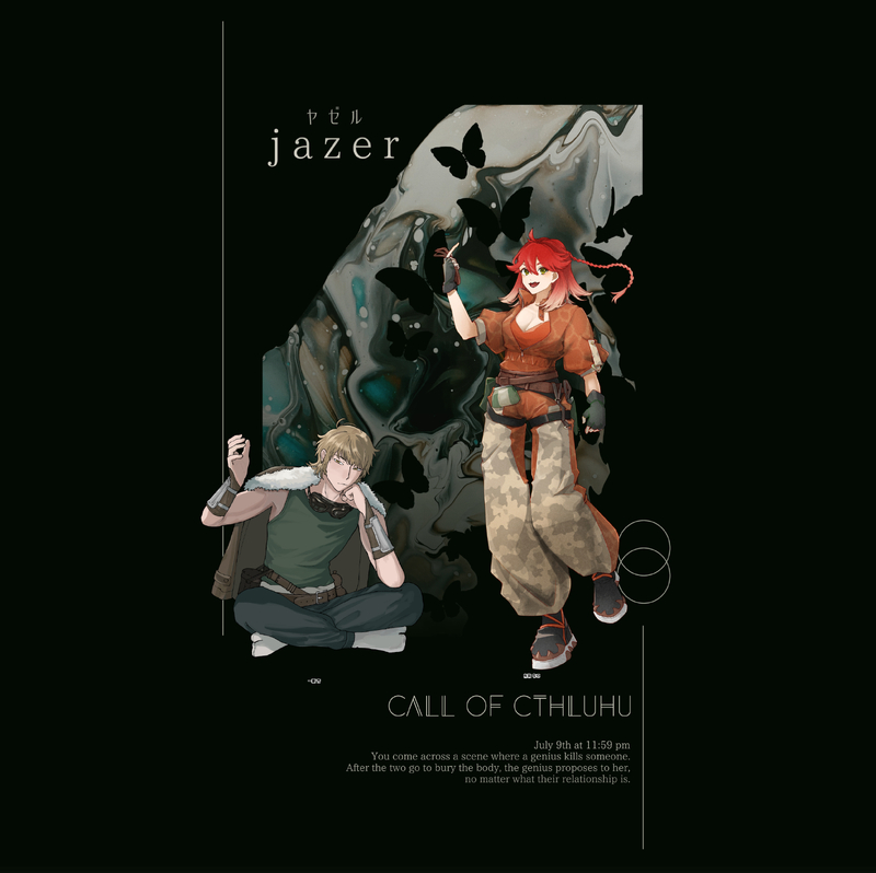 竜卓の絵置き場☆quiet followMEMOCoC『ヤゼル』作:あんどう本舗 さまKP:ぬっちゃんHO天才:一慶 杏(ぬっちゃん)HO秀才:有染 ちの(竜卓)一晩で遊べるさっくりシナリオながら、じっとりとした不気味さと不思議な気持ちを味わえて楽しかった〜!久々のぬっちゃんとのタイマンで、のびのび出来たのも良かった☺️ #TRPG #卓報告 tabletopReport Tap to full screen (size:2491x2486).Repost is prohibited Let's send reactions! freqpopularsnackothersPayment processing Replies from the creator Follow creator you care about!☆quiet follow 竜卓の絵置き場DOODLECoC『脈動』作:えのまる さまKP 竜卓PC / PLHO1科学者:ゆき・アルヴァ・ニーストロム / 米原 さんHO2名称X:null / ありす さんEND-4!!RPのふたりの言葉にほっこりしたりドキッとしたり、楽しい卓でした!!! 竜卓の絵置き場SPOILERCoC「♡VEЯ」のNPC 現行未通過✕胸から下の服わかんないよ〜って思いながら描いてる 2 竜卓の絵置き場MEMOCoC『彁来』作:あんどう本舗 さまKP ばあ さんPC / PLHO1:烈生 忠義(いさお ただよし)/ らく さんHO2:内治 統(ないち すべる)/ たくみ さんHO3:狭間 栞(はざま しおり)/ 竜卓HO4:樽目 藍紫(たるめ らんし)/ もり さんEND1 全生還!偉すぎる!!シナリオもHOもRPもずっと楽しかった!このメンバーで集まれたのも嬉しかった〜!☺️♥️ 3 竜卓の絵置き場MEMOCoC『天資の鳥は何処で鳴く』作:わさび さまKP:竜卓HO1 天才 長嶋 一茶 / たのCHO2 努力家 蛾子 みゆる / ぬ。HO3 カリスマ 不増 朝顔 / 加工肉HO4 新人 更利賀 空羅 / 衝動性衣装合わせできてくれました〜!!みんな、いい味出そうで楽しみ〜!!^^ 竜卓の絵置き場MEMOCoC「DL:Halloweneir」作 hiy/ビリ庫 様KP:あるすんPC/PLHO1:流閃(るせん)/ 餅の進 さんHO2:まひる / くまこむし さんHO3:毬緒(まりお)/ 竜卓HO4:了㐅(りつ)/ 雨屋 さん全生還でクリアです!!トゴスマ継続シナリオ楽しかった〜!みんなのハロウィン衣装も良かったし、色んな新しい景色が見れて楽しすぎた……!! 3 竜卓の絵置き場MEMOCoC『昭和怪談地獄巡り』作:さとう鍋 さまKP:ぬ。っちゃんHO1:岡 スミノ(おか -)/ 竜卓HO2:高弥 鶚(たかや みさご) / さこ さんHO3:兎角 兎弐角(とかく とにかく)/ さしみ さんHO4:万条目 銀三郎(まんじょうめ ぎんざぶろう)/ 浦島 さん全生還で駆け抜けました〜!!RPでも出目でもめちゃくちゃ笑った🙌終始お祭りだったし、女学生HOも楽しかった☺️ 6 related works みもりよぞらDOODLE現代入りネタで、色々な手違いが重なって某奇祭の御神体に跨る事になった獣人の男の娘、この時期はこの類(子孫繁栄祈願?)の祭りが多いそうで。 きよし@キバ&ウィザード履修中DONETRPG「デッドラインヒーローズ」のPCキャラ 「オダマキ」身長(ヒール込み)189cmのオネェ ぽんずDOODLE霧一とロコン誰にも賛同してもらえないことを前提に言うんだけど、なんか似てる気がするんだ…前髪のあたりとか?かわいい今ふと思ったけど、直人はサーナイトとか並べたいな~PC×ポケモンはたまーに見たくなるね 小鳥遊PROGRESSハイフェッツ草案 りゅうしDOODLEメカバレ風 きよし@キバ&ウィザード履修中DOODLETRPGで作成したPC 圭(ケイ) 28歳「男娼の限界腐男子」と言う設定 みもりよぞらPAST獣人(げっ歯類のチンチラ)のハイプリースト(男の娘)[性格]人懐っこくスキンシップをとるのが好きだが、基本的にインドアで面倒くさがりな感じ 発芽ゴリラPROGRESS何もないのもアレなので立ち絵進捗ポイポイ!前上げたのと大して変わってないとか言わない! #進捗 #TRPG totukiDONEFateTRPGで使ったキャラ絵。オリ鯖オリマスターご注意。 5