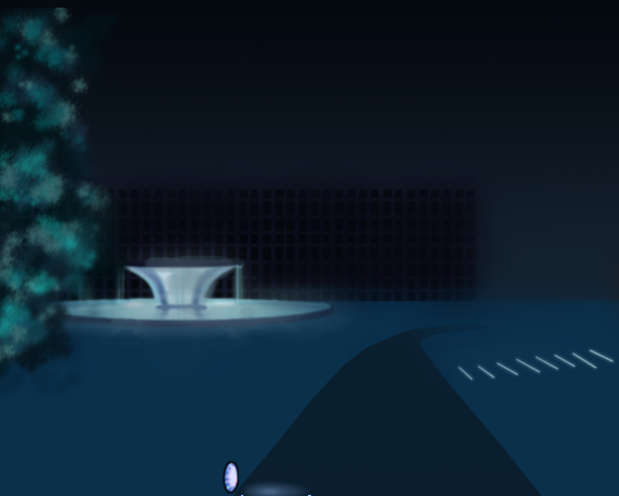 //写真を見ながら描いたら、噴水の改造度が高くて手動でぼかした。