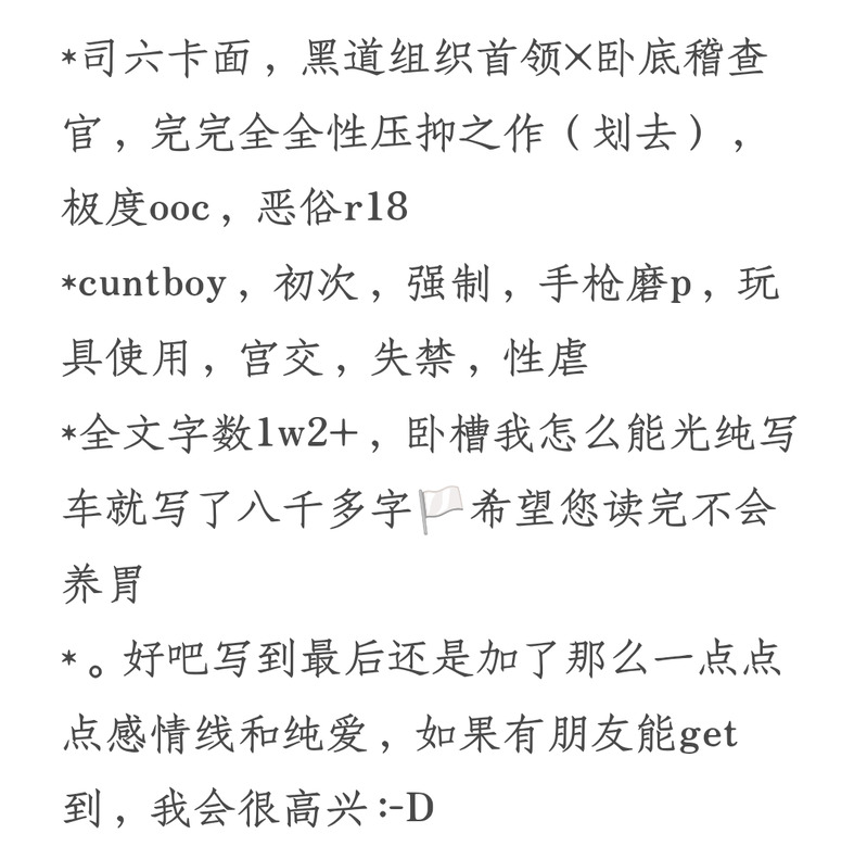 *司六卡面,黑道组织首领×卧底稽查官,完完全全性压抑之作(划去),极度ooc,恶俗r18