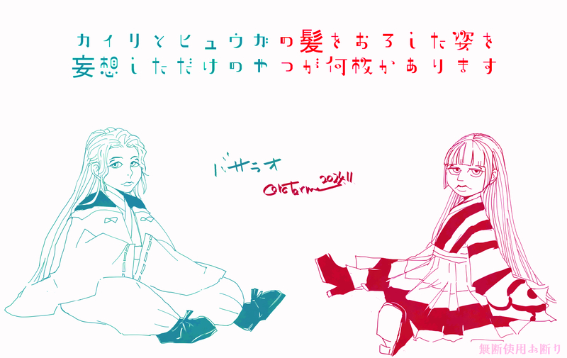 ヒュウガとカイリが髪をおろすとどんな感じか妄想したらくがきです。
