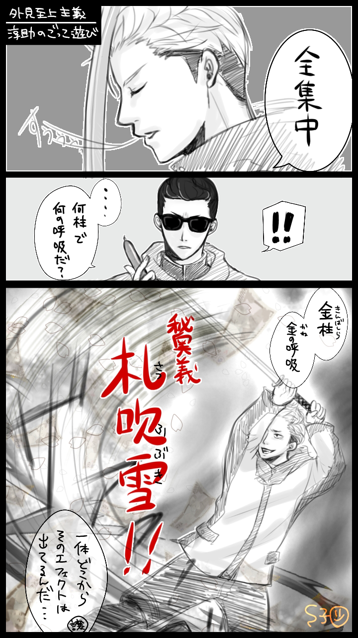 309話のワンシーン(ネタバレ?)見てこれ浮かんだ。淳助の鬼滅ごっこにもちゃんと付き合える譲さん。