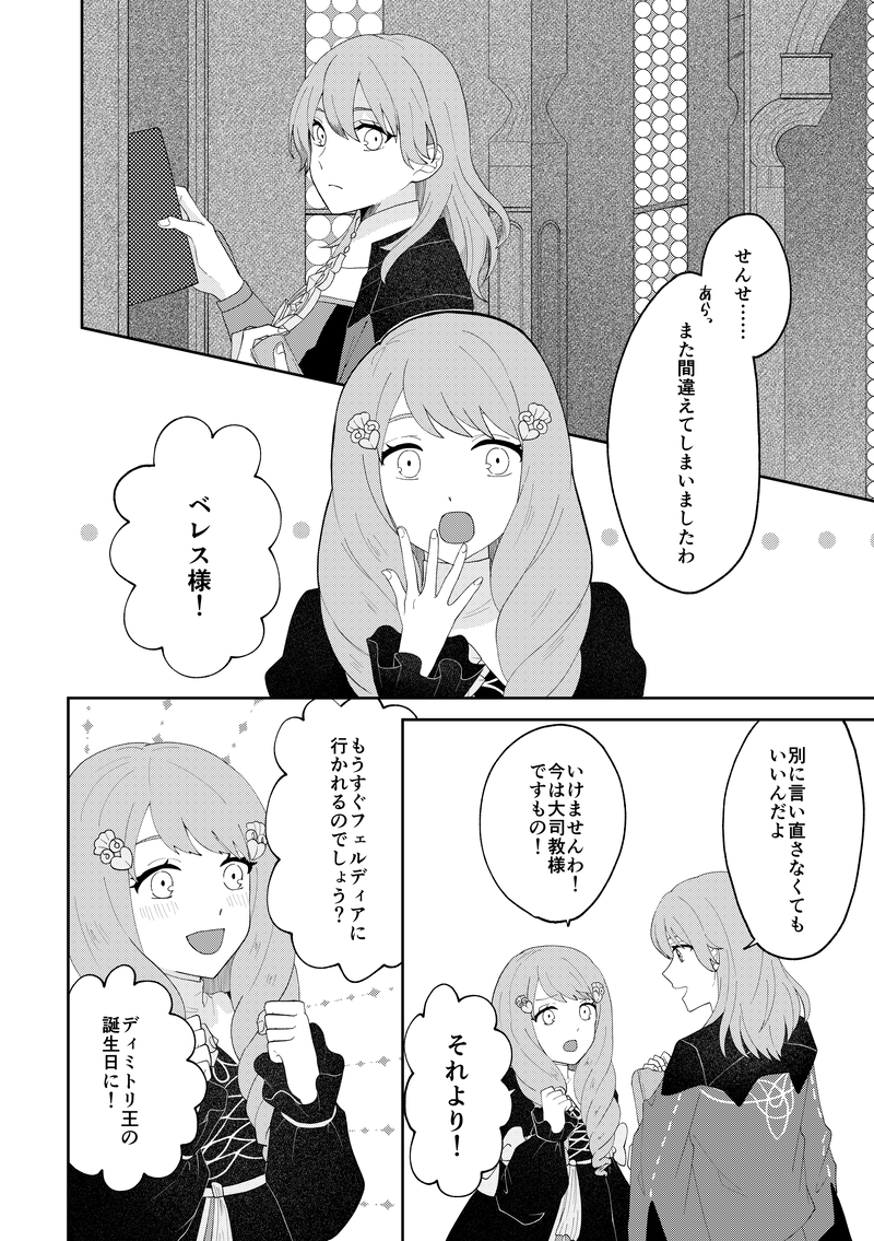 おナス田ポン之介☆quiet followDONE【いとしさ、恋しさ】変わっていく仲間と変わらない自分。帝国歴1187年、戦争が終わってから2年後の12月。去年の誕生日漫画から1年後の話。王国での舞踏会とフェルディアの海。いまだ支援Sならず。 #FE風花雪月 feWindAndSnow #ディミレス demesne show all(+16 images) Tap to full screen (size:1748x2481).Repost is prohibited Let's send reactions! freqpopularsnackothersPayment processing Replies from the creator Follow creator you care about!☆quiet follow おナス田ポン之介PAST天宮奏くんの誕生日なので、ついでに他のドリフェス!の絵も見てください 21 おナス田ポン之介DONE【祈りの行方】帝国歴1185年、星辰の節。女神の塔で再会を果たしたベレスとディミトリ。しかし5年の歳月が過ぎ、かつての生徒も今や自分の知っている生徒たちではない。ベレスは一人、どうあるべきかを考える。※軽度な流血表現あり 17 おナス田ポン之介DONE枚数は少ないけれど、キンドラ見てから描いた絵。それ以前は全て闇に葬られた。 5 おナス田ポン之介PAST笑うマトリョーシカとても楽しかったし、ドラマ放送中に結構絵が描けて嬉しかった。とてもいいドラマだった……。 9 おナス田ポン之介DONE発売5周年おめでとうございます。自分の人生を変えたゲームを選べと言われたら、間違いなく風花雪月を選びます。5周年で何かあるのか、ワクワクしています。これからも風花雪月やるぞ!アオッ! 4 おナス田ポン之介PAST2024年上半期のドリフェス!の絵応援上映会のお陰で息を吹き返したので、様々な記憶を失っていて新鮮で楽しいです。 8 related works 香山ひろ Hiro KayamaDONE 成木(木材)DOODLE【腐】ディミレト即興眼鏡漫画まだディミトリ君片思い時代とかそんなん。なおノリはいつもの木材の漫画です。 @tori_okakiDONEサンドイッチを食べるシャミア 画像荒いです。 2 香山ひろ Hiro KayamaDONE 香山ひろ Hiro KayamaDONEI like Persona 5’s art style 香山ひろ Hiro KayamaDONE friendjourMEMOSS、リンハルト×フレンR18支援Aのせい❤️ 9 めりょぉおDOODLEハマる予感しかしない ラッキーDOODLEFE風花雪月*2周目黒鷲帝国ルートクリア記念エーデルガルト。エルムズゥ!! ##版権 ##FE #FE風花雪月
