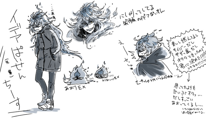 そういえばプレイ記(not監督生)描けたら描くよって友人に言っていたな覚書メモもそういえばとっていたな、と思い出したんですがメモがおクソだったのと全部を描く気力はなかったのでサイショノオトモタチなイデアぱいせんと当初アシメ双子ぎざっ歯インテリヤクザという情報しか(しか?)知らなかったので身長のデカさにビビったリーチ兄弟のらくがき。