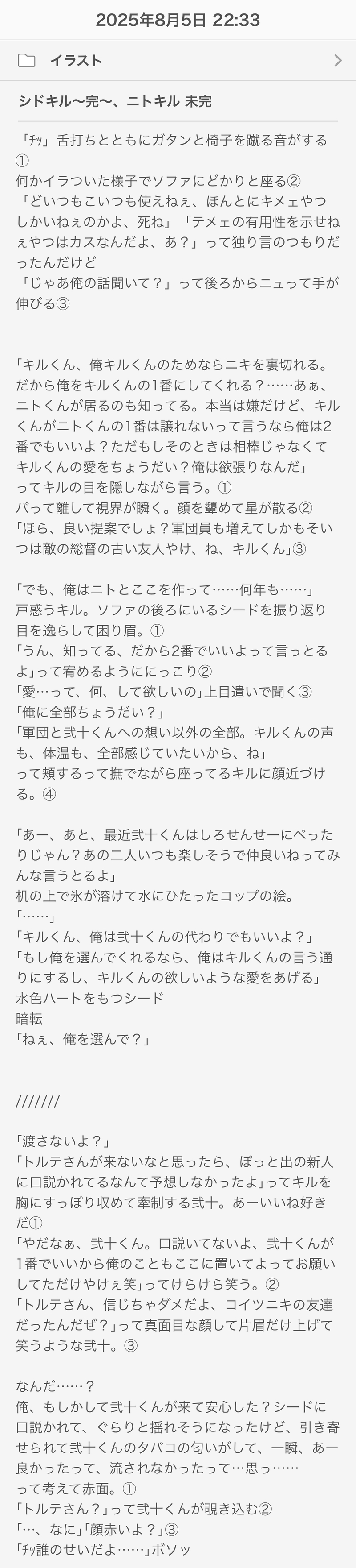 Kai_shake12 @Kai_shake12 Twitterであげるのを悩むラインのやつをあげる妄想の掃き溜め。意味の無いワンクッションが多い。宜しければリアクションをくれると嬉しい…… ☆quiet follow Yell with Emoji POIPOI 9