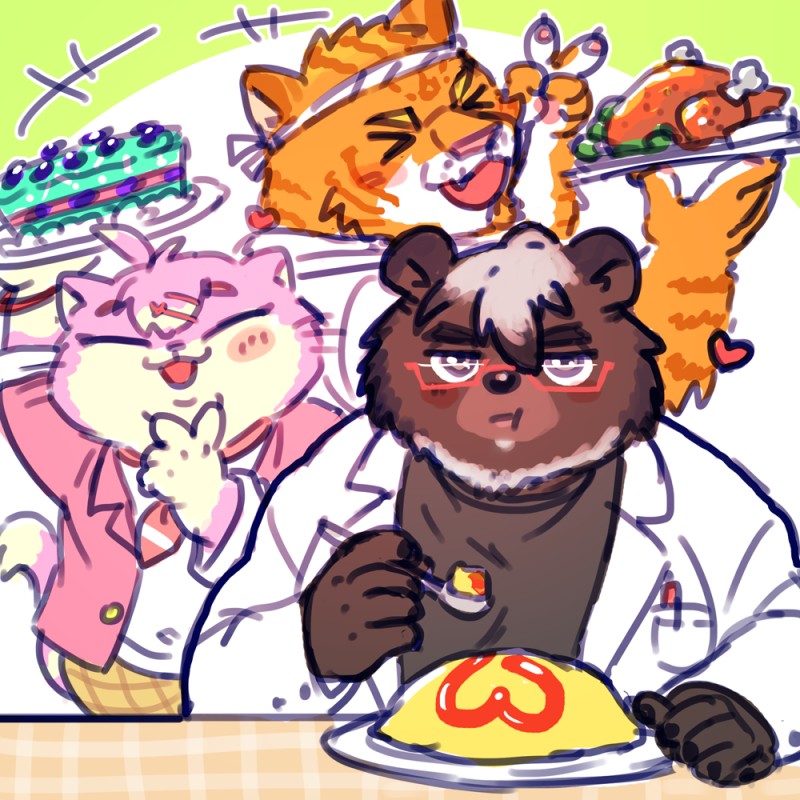 料理好きなネコ達と熊先生らくがき🐱🐯🐻