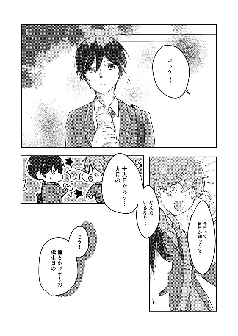 みやお☆quiet followDONE大遅刻ですが自カプ真ん中バースデーおめでとうございました #スバ北 #漫画 #あんスタ show all(+5 images) Tap to full screen .Repost is prohibited Let's send reactions! freqpopularsnackothersPayment processing Replies from the creator Follow creator you care about!☆quiet follow みやおPAST◇スバ北再録◇『パンドラの箱を開けたら』31P(初出2022/7)北斗の西遊記の舞台を見てちょっと様子がおかしくなるスバルとそれを心配する北斗の話です。以前再録した『ささやかな愛へのプレリュード』とは逆に、今度はスバルの嫉妬の話でした。舞台のドラマティカが本当に凄かったので、感動したと共にこれをスバルが観ていたらどう思ったんだろう…と考えたのが始まりでした。 32 みやおPAST●スバ北再録●『ささやかな愛へのプレリュード』33P(初出 2021/8)サテライト以来、愛とは何かについて悩む北斗とそれを心配しつつ励ますスバルがちょっと進展する話です。図らずもこの話とこの後出した本でお互いが「嫉妬」という感情と初めて向き合う話になったのでもう一冊もそのうち再録したいです。 35 みやおArtSummary2022今年も1年、ありがとうございました!(絵は使い回しだよ!1年間振り返ると・スバ北アンソロ寄稿・スバ北個人誌1冊・webオンリーお手伝いちょいちょい…などのんびり目な1年でした。567で現地に行けなくなってから、約2年ぶりに現地イベントに参加できたのはうれしかったです。(現地行かずに年に2冊〜3冊出していたのはアホだと思いました)正直行くのにかなり無理をしたのですが(帰宅後1週間自腹ホテル隔離)自カプオンリー行けなきゃ生きてる意味を感じられないと思ったので、行けてよかったです!!財布がかっるーーーい!!今年後半はプライベートや諸々で休眠状態だったので、来年からはまたいろいろ動きたいです。前半は仕事でバタつくと思うので、春以降にはなると思いますが…来年はあんすた他、FGOか原神あたりでも本を出したいです。とりあえず勢いで5月申し込んだのでがんばります!!マイペース創作同人ヲタクですが、来年もよろしくお願いします!!!!みや みやおPAST◇スバ北再録◇『その瞬間に恋をした』(追憶スバ北)36P初出 2021/4自分の中のこの二人のひとつの答えがこれだな…と思ったので、何か感じていただけたら嬉しいです。 34 みやおPROGRESS絵の描き方忘れてる 2 みやおPROGRESSisyou muzui related works ちゃづDONE描いたやつその1※茨あん、ジュンあん 17 2watoyoDOODLE【朝のボールペン落書き】【日楠♀】【先天性女体化】日高先輩×男装後輩サキュバス家系楠ちゃん。海編。本当に気にしてるのは。 ココノカSPOILER幻覚なので全くネタバレではないけど1072話の発言ネタ わたさくDOODLE ちゃづDONE描いたやつその1※茨あん、ジュンあん 17 べこDOODLEピンク色のバレンタインなヨウグズ🍫 きくちゃんDOODLEサタン様犬好きかと思いきやロクサーンみたいなパターンもあるのでやっぱ人外思考なのかな~ きくちゃんDOODLEサタン様犬好きかと思いきやロクサーンみたいなパターンもあるのでやっぱ人外思考なのかな~ nnnnnnoodderaDONE【腐向け】チャバが酔ってハ崎さんに甘えてる漫画。ハ崎さんがトイレに行くのを我慢していたりする。 4