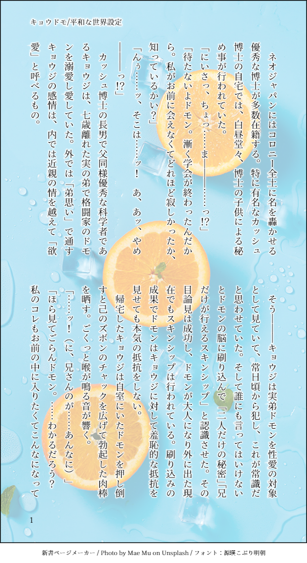 mistkingdam☆quiet followREHABILIキョウドモ2種。SSメーカーです。スパロボ時空かとんちき時空にしないとキョウジ兄さんは幸せになれない気がする #キョウドモ lepidoptera #兄ドモ olderBrother #ドモン domon #キョウジ show all(+5 images) Tap to full screen (size:618x1132).Repost is prohibited Let's send reactions! freqpopularsnackothersPayment processing Replies from the creator Follow creator you care about!☆quiet follow mistkingdamMEMOシリーズ物になりそうな、ゲッター線が推しカプイチャイチャさせるために特定の人間に動物の耳と尻尾をつけたよ、という話の動物設定※ゲッター線の被害者一覧※海動:黒猫(ラガマフィン) 真上:黒猫→雪豹 竜馬:ハイイロオオカミ 隼人:ハイイロオオカミ アムロ:プードル ウラキ:牝馬 イサム:アメリカン・ショートヘアー ガルド:ドーベルマン ジュドー:三毛猫 ハマーン:ペルシャ猫 光:ウサギ ランティス:ライオンラビット マサト:ミミロップ スパイク:キタキツネ ビシャス:牡馬 クロウ:シェパード アクセル:ロップイヤー ※甲児くん達はマジンガーがすんでの所で守った ゲッター線「まだ増えるかもしれない^^」 231 mistkingdamPAST遼剣_執事×主人かなり昔に書いた話※たぶん今だと書けないかも 2750 mistkingdamPAST20年以上前に書いたアシュルクを発掘したので晒す 6377 mistkingdamPAST発売時に書いたアシュルクを発掘したので恥を晒す。アップルグミの撮影会のときにお話した方がアシュルクだったので、せっかくなので。あまりにも古い作品ですが笑ってやってください 2052 mistkingdamPASTみつくりで太平記の再録 58 mistkingdamMOURNING対魔忍ロンド・ベル 1131 related works mistkingdamREHABILIキョウドモ2種。SSメーカーです。スパロボ時空かとんちき時空にしないとキョウジ兄さんは幸せになれない気がする 6 recommended works (「・ω・)「DOODLE2015~2017+α 個人設定+他人設定+α 66 ニワノPAST暑苦しいやつ アコヤPASTバルビリ(ゼノギアス)2018年の8/9ハグの日に描いたものです。たまには(!?)幸せそうなバルビリも良いでしょう? ♦はく♦PASTFF14オスラがほとんどの過去絵腐向けあり 30 ありす(元うさ実、マネキネコ)DOODLE自主練の途中です。夜中なのでup...おやすみなさい😴*3枚目に出来上がり版を追加しました 3 なげ ✎𓈒𓂂𓏸DOODLE【ムウシャカまとめ】これまでにTwitterに投稿したイラストなどをまとめました。(2021/11/21 星祭り4 展示作品) 8 kaitolanmaDOODLE※若干裸ありムチムチな身体を描きたい。。引き締まったいい身体も普通とかけ離れてるジャイアントな身体も描けるようになりたい…! 4 軽蛾🎉DOODLE2年前くらいに精神壊滅してた時に勢いで描いてたおそチョロ……やさしい人に甘やかされたい人生だったな……もたれかかれる人が出来たら本当に救われるよね?そう思わない? 2 鈴木清流🔞絵置き場DONEFGO腐:まとめ③⚠️R18・NSFW⚠️ぐだお攻めのハーレム ( Gudao on Top HAREM )⚠️ぐだナポがメイン、少しだけぐ他CPあり ( GudaNapo main + some other ships ) 114