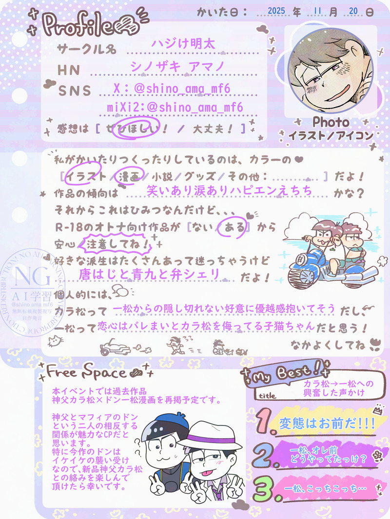 シノザキ アマノ☆quiet followINFOプロフ帳お借りしました!普段は唐はじ中心ですが今回は【神父カラ松×ドン一松(R18)】の再録をさせて頂きます🙌 #から騒ぎの一部始終 #カラ一見守り隊プロフ帳 show all(+1 images) Tap to full screen (size:1800x2400).Repost is prohibited Let's send reactions! freqpopularsnackothersPayment processing Replies from the creator Follow creator you care about!☆quiet follow シノザキ アマノINFOプロフ帳お借りしました!普段は唐はじ中心ですが今回は【神父カラ松×ドン一松(R18)】の再録をさせて頂きます🙌 2 シノザキ アマノPROGRESS唐はじ3Pと言い張るちょっとむっちりすぎるから描きなおすかもしれない(描きなおさないかもしれない) シノザキ アマノPROGRESS【※諸注意※】〇唐はじ???な途中描き線画のみ漫画です(全体の1/3)〇最終的にR18になります(掲載部分は全年齢OK範囲)〇ちょっと怪しい雰囲気ですがハッピーエンド予定完成状態で読みたい方にはおすすめできないかもです…何でもバッチコイな方のみご覧ください。 13 シノザキ アマノDONE【ベビはじネップリサンプル】ファミリーマート、ポプラグループ、ミニストップ、ローソンにてご利用できます。ご入用の方は是非ベビはじちゃんを出力してあげてください🙇♀️※サイン以外のウォーターマーク、ノイズはサンプルのみで、印刷には出ません。※ 2025/2/26 1:00~2025/2/26 5:00はメンテナンスのため印刷できません。 シノザキ アマノDOODLEはじめをアレコレした落書き(見辛いです)なんでも許せる方向け※リボン※首輪※tkbクリップ※コウソク器具※むりやり的描写お相手はご想像にお任せします… シノザキ アマノDONE『2025からいち姫始め企画』お邪魔しました~っ(事後のためワンクッション) related works シノザキ アマノINFOプロフ帳お借りしました!普段は唐はじ中心ですが今回は【神父カラ松×ドン一松(R18)】の再録をさせて頂きます🙌 2 recommended works hiyamatu_24GIVE UP #カラ一 purintabetai22DONE補経 2 きょうMOURNINGまた懲りずに17歳カライチ未満。いちまつの猫耳の話。 4304 raburabuka24DOODLE自分絵天猫 まれもちDOODLEオーナーのティンは半勃起くらいのイメージで描こうと思ったんだけど、オーナーのティンは半勃起でもでかいんだ!!という幻想が邪魔をして思ったより大きくしちゃったかも。…いや、オーナーのティンはこんなもんじゃないからな…。恐らく凶器だから。銃刀法違反。…てことはつまりチンくんのナルももっと広がっていないとなのか…??奥が深すぎるよエッッッッち絵…😢 CANDYDONER-18 ニート カラ一第10回 #カラ一版ワンドロ・ワンライ2024 お題「呪い」 38分大遅刻すみません 🧍♀️🧍🧍♂️PASTこれまでの太郎太刀まとめ⚠️たろさに・絵チャ・返り血表現などごちゃ混ぜです⚠️ 36 melophormyrmexDONEgenshin impact aether comic // lyrics from lookatme by jann 2 0501luge_BBPROGRESSひゅるりらぱっぱのよしかげさんが描きたかった 2