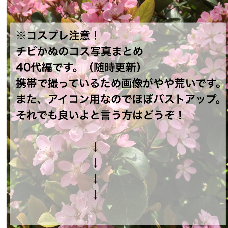 nyankotei_oh☆quiet followDONE最近のコス。さすがに若いキャラをやるのがキツくなってきた💦でも好きなキャラの服着てキャッキャ楽しむのに年齢は関係ありません。年齢とは私のアイデンティティの一部であり、何かを制限したり我慢する為の言い訳ではないのです。twst→ケイト、トレイバディミ→ルーク・ウィリアムズ #コスプレ写真まとめ cosplayPhotoSummary show all(+5 images) Tap to full screen (size:3059x3059).Repost is prohibited Let's send reactions! freqpopularsnackothersPayment processing Replies from the creator Follow creator you care about!☆quiet follow nyankotei_ohSPOILER※一応ネタバレ含むのでM15以上クリア閲覧推奨色んなテンプレをお借りしてウチのエドルクで答えてみました〜。こうして書き出してみると自分が2人をどう捉えてるか再確認できて楽しい。こういう関係が刺さるお仲間さんいるといいな! 3 nyankotei_ohDONE長男きなこ(アメリカンショートヘア・♂)最初はウサギを飼う為にお店へ行ったんですが偶然この子を見つけ、トイレの縁をグルグル歩き回ってはボテッとこける愛嬌ある姿に惚れ込み、その日この子と一緒に居た黒猫のあんこと2匹同時にお迎えすることに。次男あんことはべったりラブラブで、性格はのんびり屋で誰にでも優しく、皆のママ(♂)的存在でした。平成28年1月24日腎不全で虹の橋へ。享年6歳。 60 nyankotei_ohDONE最近のコス。さすがに若いキャラをやるのがキツくなってきた💦でも好きなキャラの服着てキャッキャ楽しむのに年齢は関係ありません。年齢とは私のアイデンティティの一部であり、何かを制限したり我慢する為の言い訳ではないのです。twst→ケイト、トレイバディミ→ルーク・ウィリアムズ 6 nyankotei_ohDONEほとんど宅コスでアイコン用に撮ったものなのでバストアップが多いです。30〜39歳まで幅広い。塔の上のラプンツェル→ラプンツェル進撃の巨人→リヴァイFGO→ロビン、ヘクトール、李書文Devil May Cry→バージルツバサ→ファイ血界戦線→スティーブンFF15→ノクティス戦国BASARA→石田三成、徳川家康DQ4→ロザリーマクロスF→シェリル 27 nyankotei_ohDONE運営に問合せ、コス写真を載せても良いと確認が取れたのでアップしました。20代は一番色んなキャラのコスをしたのに写真あまり残ってなくて残念です😔⚪︎テニプリ→橘桔平⚪︎BLEACH→市丸ギン⚪︎ネウロ→アヤ・エイジア⚪︎銀魂→銀時⚪︎REBORN→雲雀恭弥⚪︎学園ヘブン→中嶋英明⚪︎FE聖戦→エーディン⚪︎戦国無双2→石田三成⚪︎TOA→ジェイド⚪︎FF7→ツォン 15 nyankotei_ohSPOILER※一応ネタバレオペラ座の怪人観て来て勢い余って描きましたオペラ座パロ。ファントムのファントム☺️ルークのクリスティーヌ、ルークリスティーヌも追加しました。 2 related works yukinoayameDONEふゆばじ cosplay 腐向けOK?→ y/n 4 op14_iiiINFO6/30 junebride fes発行予定三リョコスプレ写真本サンプルです。A5/60p/800円予定です。Op14-III ukt&tea 10 nyankotei_ohDONE最近のコス。さすがに若いキャラをやるのがキツくなってきた💦でも好きなキャラの服着てキャッキャ楽しむのに年齢は関係ありません。年齢とは私のアイデンティティの一部であり、何かを制限したり我慢する為の言い訳ではないのです。twst→ケイト、トレイバディミ→ルーク・ウィリアムズ 6 yukinoayameDONEふゆばじ 腐向け❄️氷宮📸あやさん Tenstar_STRAININGatnr顔出しなしコスプレ写真まとめです。☔→🦉→🐹→🐥→🐇の順番です捏造衣装(衣装一部不足)注意なのでなんでもありな方のみどうぞ自宅なので背景きったないのは気にしたら負けです☆パスワードのヒントは「Are you “OK”?」 5 🎼 yuePAST文或概念衣装cosまとめウィッグ無しの全部地毛なので帽子で誤魔化されてください枚数あるので画質落としてます※撮影地許可済 29 nyankotei_ohDONEほとんど宅コスでアイコン用に撮ったものなのでバストアップが多いです。30〜39歳まで幅広い。塔の上のラプンツェル→ラプンツェル進撃の巨人→リヴァイFGO→ロビン、ヘクトール、李書文Devil May Cry→バージルツバサ→ファイ血界戦線→スティーブンFF15→ノクティス戦国BASARA→石田三成、徳川家康DQ4→ロザリーマクロスF→シェリル 27 nyankotei_ohDONE運営に問合せ、コス写真を載せても良いと確認が取れたのでアップしました。20代は一番色んなキャラのコスをしたのに写真あまり残ってなくて残念です😔⚪︎テニプリ→橘桔平⚪︎BLEACH→市丸ギン⚪︎ネウロ→アヤ・エイジア⚪︎銀魂→銀時⚪︎REBORN→雲雀恭弥⚪︎学園ヘブン→中嶋英明⚪︎FE聖戦→エーディン⚪︎戦国無双2→石田三成⚪︎TOA→ジェイド⚪︎FF7→ツォン 15 🕊️SHIMA🐺MOURNING11月のコスプレイベントで撮影していただいたものでした 7