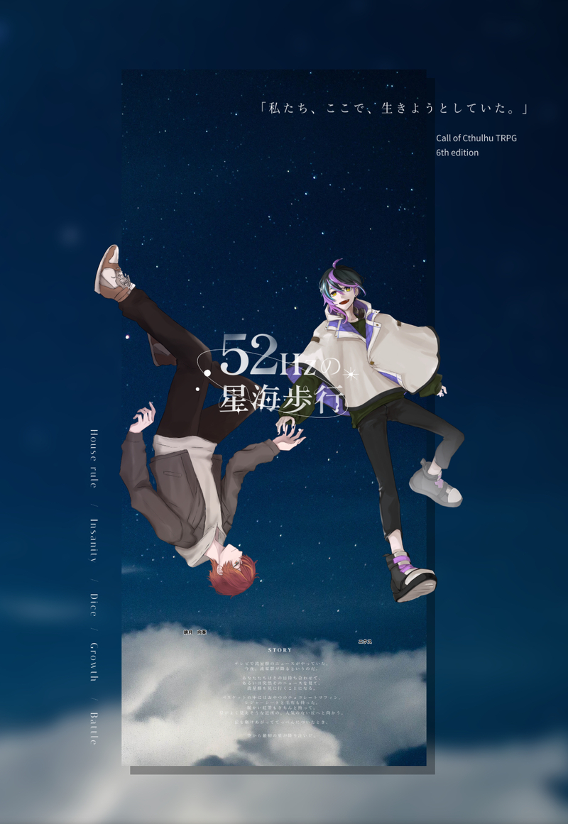 chocoyuke☆quiet followMEMOCoC『52Hzの星海歩行』KP ユウキPL/PC 北村さん(ニクス)エンドA Tap to full screen (size:1252x1817).Repost is prohibited Let's send reactions! freqpopularsnackothersPayment processing Replies from the creator Follow creator you care about!☆quiet follow chocoyukeMEMOメディウムに沈むᴋᴘたちさんᴘʟユウキENDA-1 2 chocoyukeMEMOCoC『デスイカ』KP卯月(羽鳥 しおり)PL/PCハルマキさん(笹ノ江日向) ユウキ(朝積 太陽) 折原さん(蘇芳 荊)見学たちさん全生還🍉 chocoyukeMEMOエモクロアTRPG 『ロールシャッハシンドローム』DL:ユウキ/暁月 向葵PL:北村さん/ニクス chocoyukeMEMOCoC「HO1が誘拐されたので助けに行こうと思います」KP:ユウキPL:たんていさん(HO1/李 静)宮本さん (HO2/一尺八寸 聖)さんごさん (HO3/神庭 力寿臣)トモリさん (HO4/蘇理 みつるみ) chocoyukeMEMOCoC「クソダサセーター百鬼夜行」KP:ユウキPL:たんていさん(HO1/李 静)宮本さん (HO2/一尺八寸 聖)さんごさん(HO3/神庭 力寿臣)トモリさん(HO4/蘇理 みつるみ) 2 chocoyukeMEMOCoC【砂城の王】KP:ユウキPL/PC: すずぱかさん(名雪 凪)END-Aex