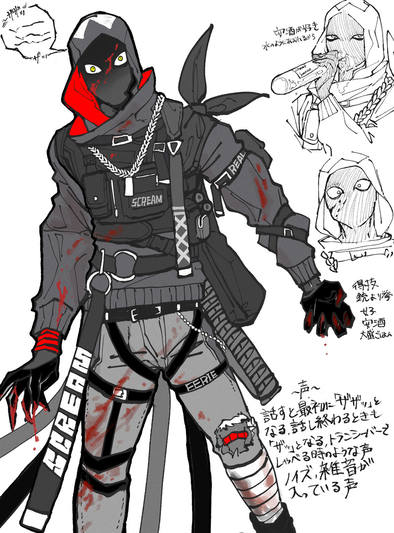 キャラ完成、完成までの原案(?)、落書き、画力気にしない描き殴りetc 初期のハスキー君の顔が怖い