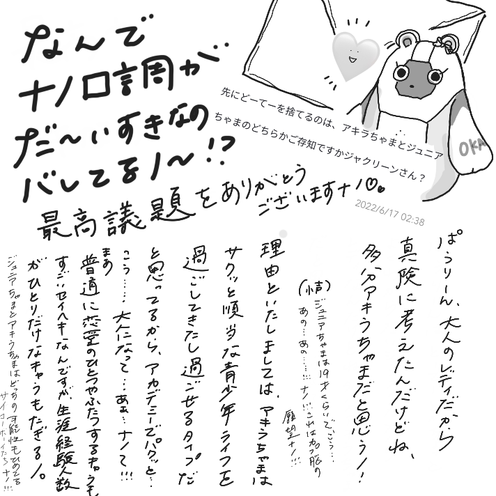 okarapowpow☆quiet followDONEウェーブボックスお返事ナノ〜〜! 本当にみなさんありがとうございますナノ〜〜〜〜!!!-2022.6/18 show all(+2 images) Tap to full screen (size:712x712).Repost is prohibited Let's send reactions! freqpopularsnackothersPayment processing Replies from the creator Follow creator you care about!☆quiet follow okarapowpowDONE25.10.10までに頂いたウェボ〜! ほんとにこんな反復横跳びオタクに優しくしてくれてありがとうございます……人生たのし!! 6 okarapowpowDONE25.7/16-9/12頂いたうぇぼみんな嬉しいんですがみんな、みんな、天才すぎませんこと?! 誇ってほしい ひとをうれしくさせる天才であること…うつくしく愛おしい言葉をつむぐ天才であること…ありがとうございます!! 毎度励みです!おかげさまで人生楽しい全ジャンル大好き、深まるこの世への愛! 残暑(残暑って言葉好き)厳しい折ですが、果物とか好きなものとか食べて心穏やかにお過ごしくださいませ…! 8 okarapowpowDONE2025.06.01〜07.15に https://wavebox.me/wave/6f3w0l5m8utegnfb/ ヘ頂いたおウェーブお返事〜〜!!🌊 ありがとうございます…!✨ ほんとイベや波箱や匿名箱で嬉しいお声かけてくださるみなさまのおかげさまで、作ってよかったな〜!も、もっと色々書きたいな〜!も山盛りで人生楽しいです!! 2 okarapowpowDOODLE2025.4/29〜5/31に頂いた波〜〜ありがとうございます!!!イベ楽しかったな〜〜!本やお話喜んでくださるの嬉しすぎる同人たのしい😭😭🫂 ツイートというか弊人生も見守ってくださりありがとうございます…♡ 日々の大切な時間を縫い貴重なお言葉を届けてくださりぜんぶ大切です本当に幸になっております……!!(お返事漏れ等あったらお気軽に教えてやってくださいませ…!) 10 okarapowpowDONEまたも大変お待たせしましたうぇぼお返事ー!! これにて今までいただいた波は一旦ぜんぶお返しし終えられたかしら…?! もし私のないにゃけどって方いらしたら絶対私の追加漏れなだけなので本当お気軽に教えてやってください…!今回からペーパーライクフィルム取っちゃったから超ペン先がスベッている!ただでさえ難読なのに!! いっぱいありがとございましたー!! 9 okarapowpowDONE2024年6月〜2025年4/20までの、hrak関係作に頂いたご感想へのお返事ー!!!!時差にもほどがあるおそおそですみません…!!読み返してたらたくさんのうれしい気持ちを頂き、当時の私の果てしない心の栄養であったことを思い出しつつ、今の私の元気もチャージさせていただいちゃいました…!!そしてみんなさん出ツーへの愛がふっっかくて…私も書きたくなっちゃったー!!ありがとうございます!! 30 recommended works 朝暮夕DOODLE[新风]色色可以色色 SanphyDONE #bbonly527 / ONE FINE DAY230527. ぬいぐるみのなまえは? 読む方向 ⊙-> 18 yzuyuzu_0120DOODLE💜🧡🛁すけべちんは見えないけどすけべしてるので。15↑?(y/n) 3 ごんごんDOODLE続なんやこのらくがきの量はあほちゃうか???(まだある) 40 あぃ~DOODLEpass:pnpn 新しい髪型のあれいくんかわいいよお!サンタ服も似合っててやばかった(スクショを拝見して) 愛を叫ぶ酢橘DONE𝟸𝚓𝟹𝚓二次創作rf兄弟パロ(だーいぶ遅い)クリスマスの話遅くなっても良いよね(自分への言葉)pw「クリスマスの日付(イブではないです)」 9 hituzi555DOODLE花葬標本:現行未通過✖︎描いたスチル(多分手直し入るけど) 4 ichigomaru1155SPOILERCoC6 「白息」、四季送りHO夏KPC、冬PCの陣で使用したスチル。ネタバレを含む 16 InaryDOODLE没った絵とからくがきとかの詰め合わセットとまいたけで使った絵 15