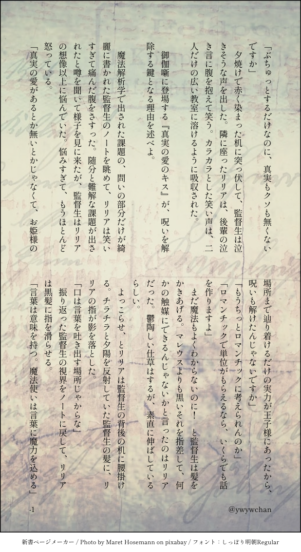 よわよわ☆quiet followDONE気づかれないオマジナイは、きっと解かれることもないリリアと性別不詳監督生先輩がこっそりと監督生にまじないをかける話キスの日にと練っていたのに、砂糖と間違えてニガリを入れた感じになった。 show all(+2 images) Tap to full screen (size:618x1132).Repost is prohibited Let's send reactions! freqpopularsnackothersPayment processing Replies from the creator Follow creator you care about!☆quiet follow よわよわMOURNING❤️、地獄の動物言語学実技試験 4 よわよわDONE占星術応用の先生は変な人だし用意された机が生徒よりひとつ多い。♦️先輩語り口調 2 よわよわMOURNING🦇先輩をこっそりと好きなので描写がストーカーのようになってしまった監(オチ迷子になったので供養) よわよわMOURNING🦇先輩と博物館に行きたいよ〜〜〜という監の話。(導入で力尽きたので🦇先輩出てきません) 2 よわよわMOURNINGこの導入のケイト先輩、個人的にすごく格好良く書けた!(別の人とのお話、の導入だったけどオチと上手く繋がらずお蔵入り) よわよわDONE気づかれないオマジナイは、きっと解かれることもないリリアと性別不詳監督生先輩がこっそりと監督生にまじないをかける話キスの日にと練っていたのに、砂糖と間違えてニガリを入れた感じになった。 3 recommended works 07mx50FGnpAbnVQDOODLE子供扱いしないでよ!! 07mx50FGnpAbnVQDOODLEスターゲイズギアオルト君はいたずらっ子だから好きな子からかうタイプの男子だったかも??監督生が泣いてしまったので後で花とか渡して機嫌を取ろうとする不器用なオルトシェラウドは、いる…! よわよわMOURNINGオル監(性別不詳)恋愛なし。なんか不穏。オルの「検索ワードにヒットするものは ありませんでした」から逃げる監督生。 2 11hrakDOODLE平和なオル監※顔あり性別無し監督生。 想いが抑えられずに描いてしまった おろぼもほDOODLEオル監 Linlin_na8PROGRESSオル監R18線画 4 Linlin_na8DONEオル監R18できた 4 Linlin_na8DONEオル監です 2 Linlin_na8MEMOオル監のラフ 3