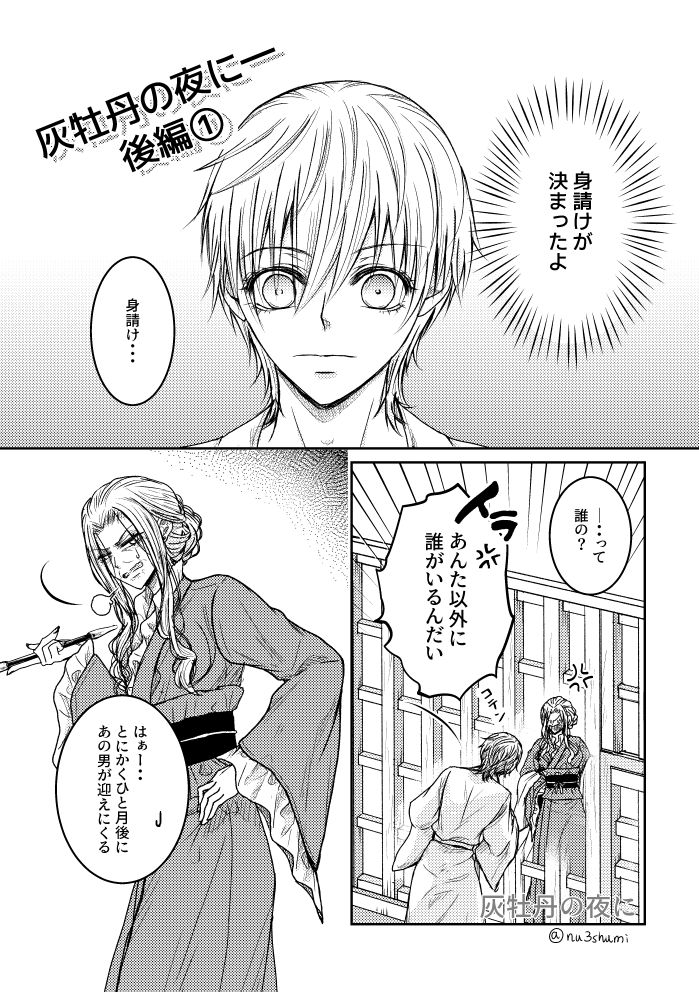 nu3shumi☆quiet followDONE丹穹・遊郭パロ『灰牡丹の夜に(後編①)』異世界の遊郭パロで裏妓楼で働く男娼の穹と客として会いにくる丹恒の話後編は長いのでまだまだ続きますまた続きも少しずつ更新出来たらなと思ってます過去の話である前編と中編もこのポイピクにのせています何でも許せる方向け show all(+17 images) Tap to full screen (size:699x992).Repost is prohibited Let's send reactions! freqpopularsnackothersPayment processing Replies from the creator Follow creator you care about!☆quiet follow nu3shumiDONE【丹穹・R18】合作本 『HEAT』小説 柚宮様 漫画 ぬまサンプルは委託先にて▼通販・虎の穴様https://ec.toranoana.jp/joshi_r/ec/item/040031247479/ ▼通販・フロマージュ様https://www.melonbooks.co.jp/fromagee/detail/detail.php?product_id=3000520 nu3shumiDONE丹穹・遊郭パロ【R18】『灰牡丹の夜に(番外編)』本編とは余り関わりなく描きました裏妓楼で働く男娼の穹と客としてやってくる丹恒の話急いで描いていたので線が荒いです・・4Pと5Pは頑張った一番描きたかった所・・楽しかったw何でも許せる方※R18なのでご注意下さいパスワード⇒【 yes 】 8 nu3shumiDONE丹穹・遊郭パロ『灰牡丹の夜に(後編①)』異世界の遊郭パロで裏妓楼で働く男娼の穹と客として会いにくる丹恒の話後編は長いのでまだまだ続きますまた続きも少しずつ更新出来たらなと思ってます過去の話である前編と中編もこのポイピクにのせています何でも許せる方向け 18 nu3shumiDONE①丹穹「中秋の名月」 今描いてる「灰牡丹の夜に」の元になってる②過去ログ丹穹の発情期と最後一枚だけ楓穹 8 nu3shumiDONE丹穹/現パロ/R18花職人見習いの穹と作家の丹恒何でも許せる方向け※R18なのでご注意下さいパスワード⇒【 yes 】 4 nu3shumiDONE丹穹①お世話係に任命された丹恒 ※ノリと気まぐれで描いてるので話のまとまりないです②過去ログ 37