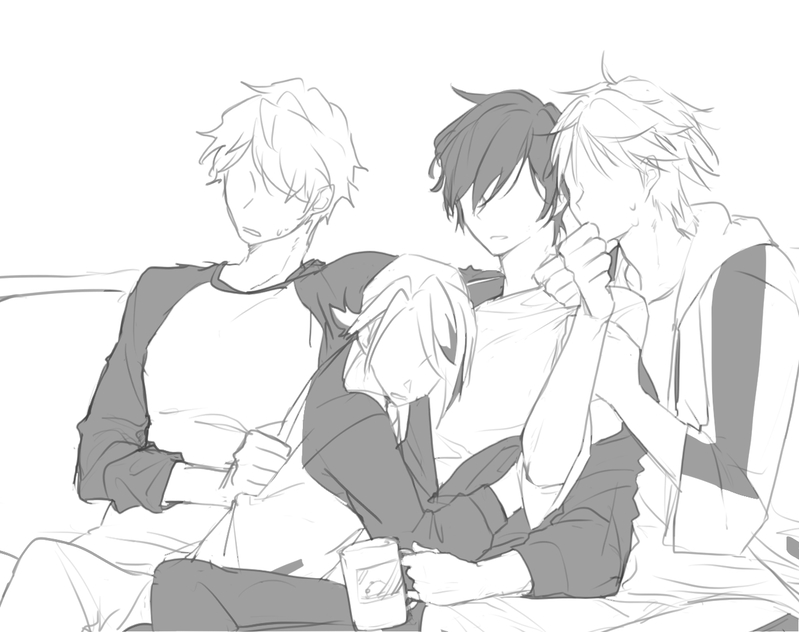 カーテンは閉め切り、電気を消していても、フェイスの目には部屋の中の様子がよく見えた。窓から射し込むランタンの灯りは、リビングの床に二人分の影を伸ばしては縮めていく。尖りきって壁にまで届きそうな三角の影は全部で四つ。フェイスの猫のようにぴんと立てた耳と、隣で膝を抱え背を丸めるディノの、フェイスのものより大きくてふさふさの毛が目立つ耳。そのシルエットがひくひくと落ち着きなく動くのを、フェイスは身動きもせずただじっと見つめていた。