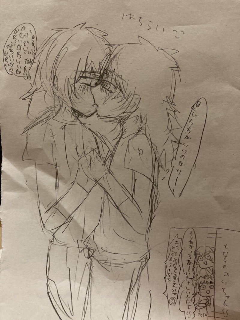 鉢雷可愛すぎて恥ずかしいのでギャグに逃げがち、、、、手汗で消しゴムかけたらクシャなっちった😜