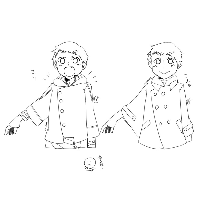 アホすぎて蓮くんのロゴス服の構造がイマイチ分かってないからどうしたもんかなーって悩んでたんだけど、私服に似たような物があったからわざわざ着て写真撮って確認して描いてたらくがき