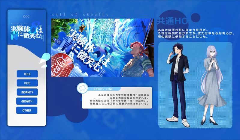 yuzuru☆こそフォロお知らせCoC「実験体δは青に微笑む」半テキKP:アットゥンさんPCたち久遠寺 透(かなきみPC2)/ななせさん一ノ瀬 冴月(ぽめろんHO1)/ゆずる2026/02/09 - START タップで全画面(原寸:2462x1439)無断転載禁止 リアクションをたくさん送って応援しよう! よく使う人気おやつその他支払処理中 作者からのリプライ 気になる人をどんどんフォローしよう!☆こそフォロ yuzuruお知らせCoC「実験体δは青に微笑む」半テキKP:アットゥンさんPCたち久遠寺 透(かなきみPC2)/ななせさん一ノ瀬 冴月(ぽめろんHO1)/ゆずる2026/02/09 - START yuzuruお知らせinSANe「儀典:ドグラ・マグラ」ボイセPC:十亀 一鶴/ササトさんGM:ゆずる2026/2/4 - 使命達成 yuzuruお知らせCoC「SILENT」ボイセKP:うたかたなひよこさんSKP:むとうめさんHO1:神久 氷熊/とーりさんHO2:暁月 節/上下左右さんHO3:姫宮 杏子/ゆずるHO4:金巻 撥生/鴇はさん yuzuruお知らせCoC「0.1秒前、窓を見ていた。」KPレスPCたち雪浪 野分/若村さん喜多 薫/ゆずる見学:ほのたまさん2026/1/30 - エンド yuzuruお知らせCoC「アルジャーノンの伝言」ボイセKPC:日下部 正人/安斎さんPC:花谷 ほたる/ゆずる2026/1/26 - 2026/1/27 END2 yuzuruお知らせCoC「ヒポカンポスの霧を聞け」半テキKPC:龍津神 妃梛/ゆずるPC:龍津神 洋雅/んーさん2026/1/20 - 2026/1/22 END2 おすすめ作品 収容所らくがきsn/stイチャ サ10シが シnジにだいぶ懐いてる 3 galaxysodasらくがきD-don’t look yuwei324907らくがき【莫男主】回魂夜 yuzuruお知らせ新CoC「プルガトリウムの夜」ボイセKP:アットゥンさんHO1:更科 ひなた/ゆずるHO2:夜来 珠蒼/黒夜かなめ。さん2024/12/01・02 - エンドAhttps://x.com/yuzutrpg/status/1863146138502881712 yuzuruお知らせCoC「白いふわふわの犬」半テキKP:ぴろりきんPC:鏑木うらら/ゆずる2024/12/03 - エンドhttps://x.com/yuzutrpg/status/1863968971818745983 yuzuruお知らせCoC「TRPGプレイヤーでしか回れないCoCシナリオ」ボイセPCたち▸住良木 慎太郎/だまさん▸皆川 萩生/なたちゃんさん▸早乙女 恭平/アットゥンさん▸瀬名 くるみ/れこさんKP:ゆずる2024/12/05・06 - エンドA-1https://x.com/yuzutrpg/status/1864694071413100778 2 yuzuruお知らせCoC「おとなりさん」半テキKPC:鳴宮大成/ゆずるPC:六花君湖/鴇は2024/12/21-2024/12/22 エンドA-H「天泣」https://x.com/yuzutrpg/status/1870820774963249544 yuzuruお知らせkutulu「蟹工船の帰還」GM:ひとさんPCたち長清 勇司/hiaraさん児玉 切尾/ササトさん一重 久美子/ゆずる2024/12/19・20・23 完!https://x.com/yuzutrpg/status/1871204681781055526 yuzuruお知らせエモクロア「1072」ボイセGM:だまさんPC:赤羽 冬樹2025/01/04 - シナリオクリア