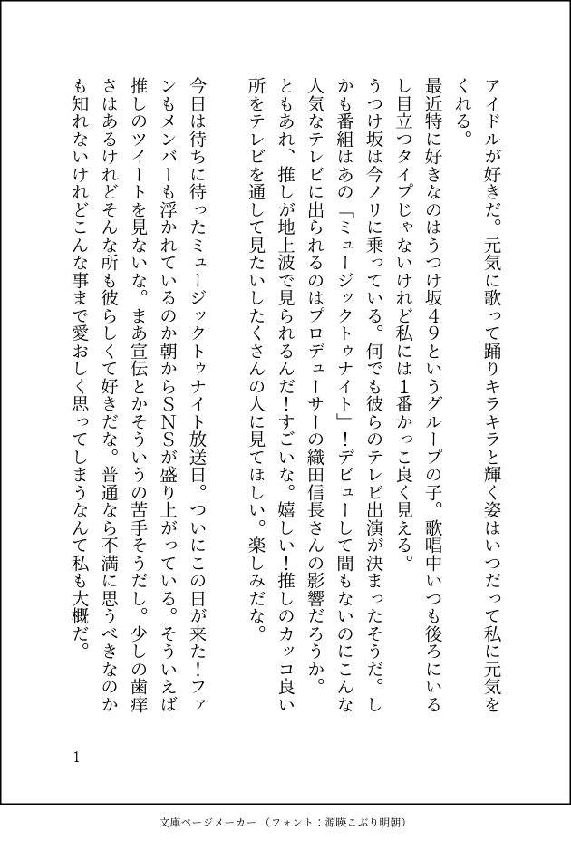 tooownzth☆quiet followDONEぅっけ坂のアンダーメンバーを推しているファンの話です。モブしか居ません。こういうの初めてなので読みづらかったらすみません… show all(+3 images) Tap to full screen (size:630x928).Repost is prohibited Let's send reactions! freqpopularsnackothersPayment processing Replies from the creator Follow creator you care about!☆quiet follow tooownzthSPOILERファンブックネタバレ安土城でこんなやり取りが流行ってそう tooownzthSPOILERMLの特に推しが可愛かった所、日替わり途中で力尽きたので少ないです 2 tooownzthPAST実はtosで遊んでましたのやつ気付いた人はかなり少ないはず 2 tooownzthMOURNING過去に「解散した推しアイドルに対して1年半経ってファンが独白するオムニバス小説」を書こうとしてたんですけど力尽きたので供養ですお前の文章はいつもこう 5 tooownzthDOODLE🌰🍑🌟🐟高校生みたいにバカやってて欲しいという絵です 3 tooownzthDONE👻ラのエトウくんの暗い捏造漫画。就活のしんどい場面が出てくるので注意です。 8