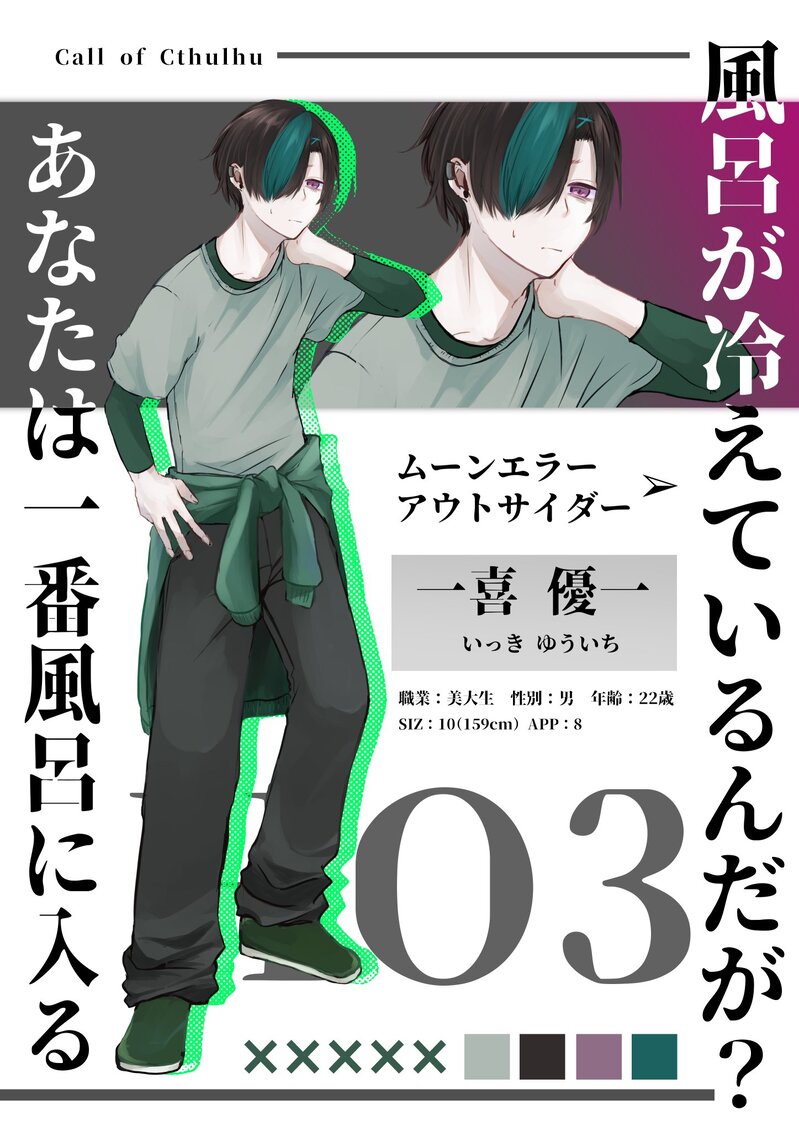trpg_rurui☆quiet followDOODLE🛁 Call of Cthulhu 『風呂が冷えているんだが?」 HO3-あなたは一番風呂に入る 一喜 優一 ##るるい立ち絵 Tap to full screen (size:1447x2047).Repost is prohibited Let's send reactions! freqpopularsnackothersPayment processing Replies from the creator Follow creator you care about!☆quiet follow trpg_ruruiDOODLE☀️ 同じ空には昇れない 🌕 HO月 榊原 御幸 ーさかきばら みゆきー================キャラデザラフを相方に頂きました…! trpg_ruruiDOODLE🌱 Call of Cthlhu 🌱 東京ゴーストマティカ HO3 鈴 璃燈 -リト- trpg_ruruiDOODLE🐟 Call of Cthlhu 『鰯と柊』 HO:教祖 白洲 楔 -シラス セツ- trpg_ruruiDOODLECall of Cthlhu 6th腕すらなくとも HO24910 trpg_ruruiDOODLECall of Cthlhuプシュケーに愛憎劇を、HO1 逃亡者 エレーナテストプレイに参加させていただきます…! 2 trpg_ruruiDOODLEB’ASH 3陣につかったスチルなど現行未通過✕ 3陣もセッション終了までは✖です。通過済み?⇒yes 4 recommended works trpg_ruruiPASTアルジャーノンの伝言 trpg_ruruiPASTCoC「セメタリーでダンスを」 HO2:あなたの前では世界は無力である 『 只楽 慕 -ただらく したう- 』 trpg_ruruiPAST誰がロックを殺すのか HO3 - キーボード 『 乾 悠馬 』 xoxxwxDOODLEシロツメクサのやつ見た 玲音くんDOODLE【注】r15?、BL初投稿からまさかのこれですキャラ名は左側アルト、右ドクターという名前ですパスワード→artdct かみおDONE夏の暑い日 7 VANDORADONEโปรดระวังข้างหลัง(pass: yes/no) uzwabiDOODLE正偽のイデアわさびのり卓1陣 HO天才 天ヶ瀬清志くんしゃくちゃんにお渡しできたのでこちらにも供養。私を狂わせた男の1人です(?)※ネタバレはありません inuzuki_nabepaDOODLE36.5°Cの方がずっと暖かいよ
