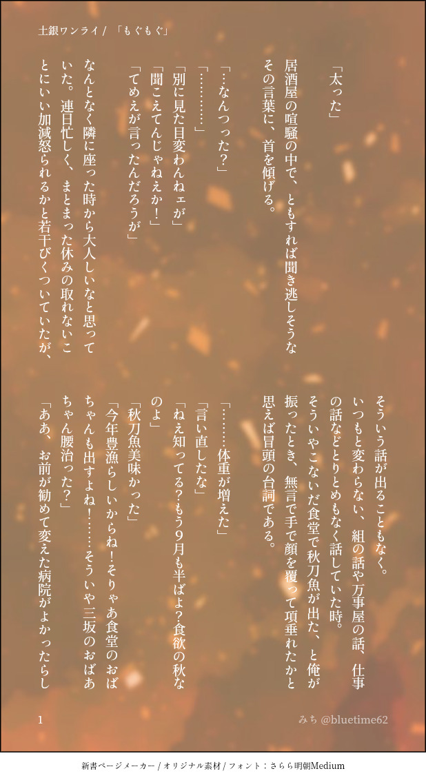 bluetime62☆quiet followDONEお題「もぐもぐ」 show all(+3 images) Tap to full screen (size:618x1132).Repost is prohibited Let's send reactions! freqpopularsnackothersPayment processing Replies from the creator Follow creator you care about!☆quiet follow bluetime62TRAINING140字【51〜55】 5 bluetime62DONE土銀ワンライ 軽くR18注意!お題【えっちな下着】 7 bluetime62DONE2025ハロウィン小話【土銀】 8 bluetime62DONEお題「手」 5 bluetime62TRAINING140字【46〜50】 5 bluetime62DONEお題「ご褒美」 8 recommended works 牛乳🐄TRAINING肌を塗って力つきました18↑?yes/no 2 すみ🐕DOODLEラフ段階で没にしたotpkの⏸️🌰自転車描けぬ……となった いずいずDOODLE服はとちゅうでどっかいった※女装 18 imokooooooooooMENU書き初め描きたい文字多すぎて… 7 wenzhibeiDOODLE 8887 得塩庫DONE # リプでもらった台詞を使って漫画を描くの漫画です。色々とおかしい所あります。あと、BAN者居ます。自デザです。 18 cornDOODLE别投求你们了🙏 2957 むつおDOODLE昔描いたやつのリメイクです(R18G) 3 まほろDONE2025カラム隊長バースデイを祝って。カラプラ婚約中。カラム隊長の誕生日を祝いたいプライド様が、レオン王子の協力をえて、アネモネでお忍びデートを計画する話。 13