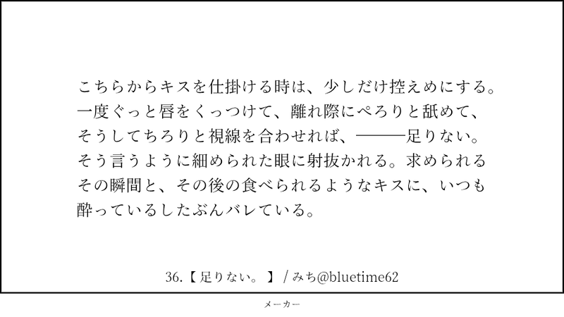 bluetime62☆quiet followTRAINING140字【36〜40】+2025銀誕 show all(+5 images) Tap to full screen (size:960x540).Repost is prohibited Let's send reactions! freqpopularsnackothersPayment processing Replies from the creator Follow creator you care about!☆quiet follow bluetime62TRAINING140字【51〜55】 5 bluetime62DONE土銀ワンライ 軽くR18注意!お題【えっちな下着】 7 bluetime62DONE2025ハロウィン小話【土銀】 8 bluetime62DONEお題「手」 5 bluetime62TRAINING140字【46〜50】 5 bluetime62DONEお題「ご褒美」 8