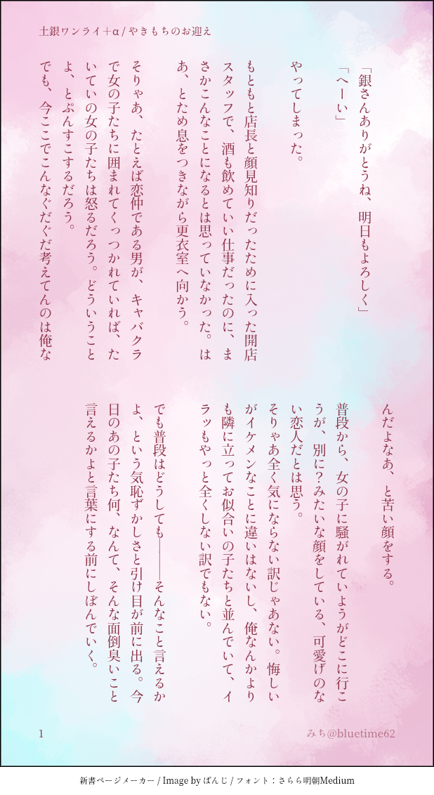 bluetime62☆quiet followDONE『やきもち』お迎え show all(+4 images) Tap to full screen (size:618x1132).Repost is prohibited Let's send reactions! freqpopularsnackothersPayment processing Replies from the creator Follow creator you care about!☆quiet follow bluetime62TRAINING140字【51〜55】 5 bluetime62DONE土銀ワンライ 軽くR18注意!お題【えっちな下着】 7 bluetime62DONE2025ハロウィン小話【土銀】 8 bluetime62DONEお題「手」 5 bluetime62TRAINING140字【46〜50】 5 bluetime62DONEお題「ご褒美」 8