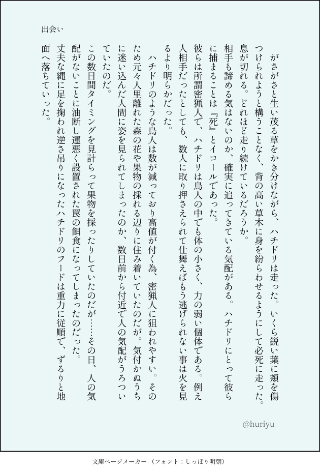 ふりゆ☆quiet followMOURNING以前相互様と盛り上がって(?)書いたハチ鷹ですイラスト挟んでハチ目線↑↓鷹目線 #傭傭 employment #ハチ鷹 show all(+8 images) Tap to full screen (size:630x928).Repost is prohibited Let's send reactions! freqpopularsnackothersPayment processing Replies from the creator Follow creator you care about!☆quiet follow ふりゆMOURNING以前相互様のイラストを元に書かせていただいた文です大元のイラストは作者様の垢移行により消えてしまっています(まめまるさま!その節はありがとうございました🙇♂️) 4 ふりゆMOURNING以前Twitterでリクエストいただいた暗猟です⚠️死ねた⚠️↑に死ネタ↓に甘々ですこちらpixivの方にも纏め済みのため横書きの方が読みやすい方はそちらでお願いします! 8 ふりゆMOURNING以前相互様に布教いただいて勢いでかいたハチ感ですイラストの後に文があります😉 7 ふりゆMOURNING以前Twitterにてリクエストいただいた猟推看病ネタですありがとうございました〜🙌 5 ふりゆMOURNING以前相互様と盛り上がって(?)書いたハチ鷹ですイラスト挟んでハチ目線↑↓鷹目線 9 ふりゆSPOILER清多夏くん、、ついつい血を描いてしまった……(๑>◡<๑) related works ふりゆMOURNING以前相互様と盛り上がって(?)書いたハチ鷹ですイラスト挟んでハチ目線↑↓鷹目線 9 綾鷹依存者INFO明瞭とテンタクルシリーズでのFAととして描いてくださったまじろさんから許可を得て、掲載させて頂いております……!!萌えます!可愛いです!18↑? yes/no 2 ふりゆMOURNING以前相互様に布教いただいて勢いでかいたハチ感ですイラストの後に文があります😉 7 ふりゆMOURNING以前Twitterでリクエストいただいた暗猟です⚠️死ねた⚠️↑に死ネタ↓に甘々ですこちらpixivの方にも纏め済みのため横書きの方が読みやすい方はそちらでお願いします! 8 unokDOODLE何億年ぶりに描くイチャよへよへムズい… 屍 百MOURNING傭傭(砂ファラ)供養です matedomokozMOURNING大佐ベダ(43)×初期傭(27)の傭傭。❗️イラストではなく、文字画像です❗️ゲーム後、戦争後遺症を発症したまま部屋に帰ってきた二人を会わせてみたかったんや……⚠️初期ナが窒息性愛気味です。 14 ふりゆMOURNING以前Twitterにてリクエストいただいた猟推看病ネタですありがとうございました〜🙌 5 sx00xr41PROGRESS傭傭cpはじめて描いたので、作業経過をあげ(※拙宅荘園傭兵の明瞭は憂鬱の青くん繋がりです) 6