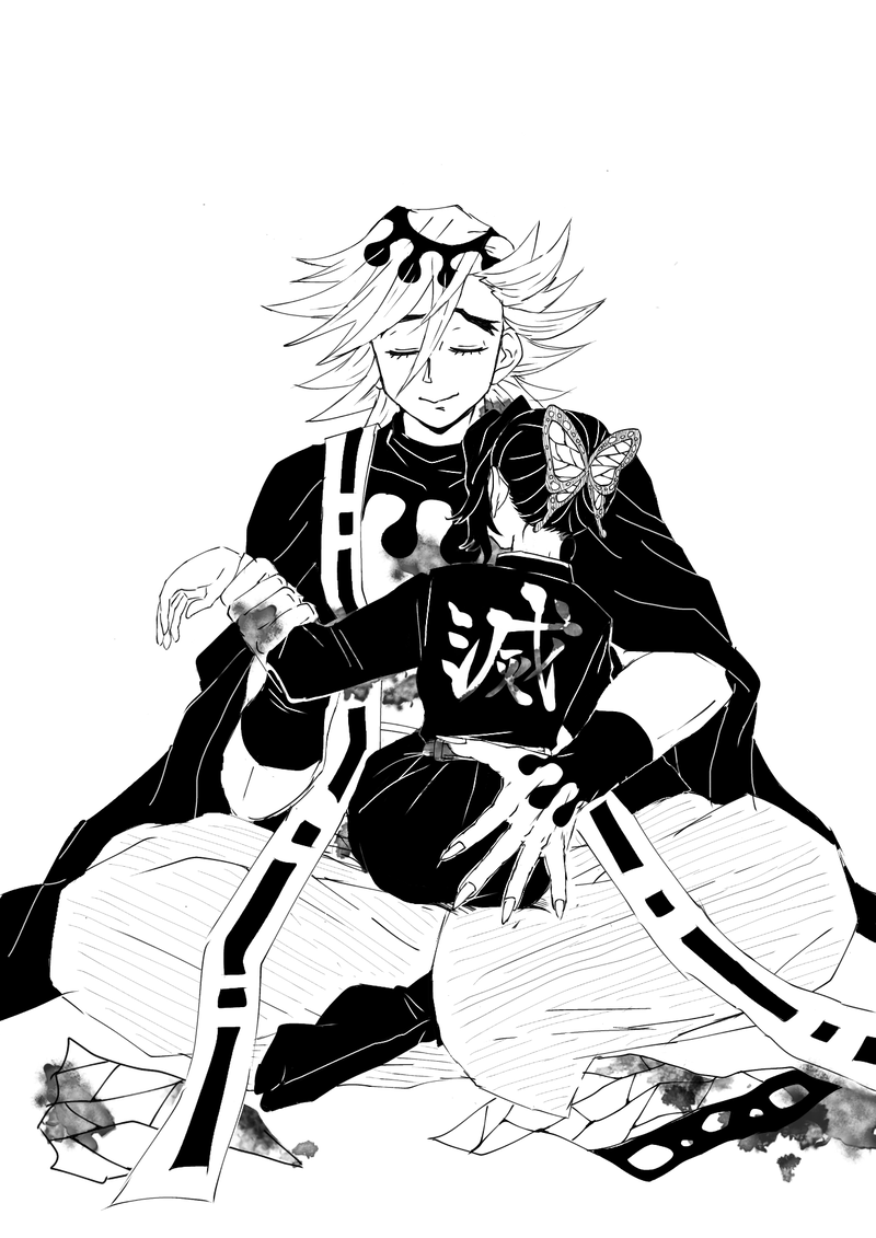 しのぶちゃんの蝶の髪飾りとちぎられた羽織が上手く描けたのでぜひとも見てほしい
