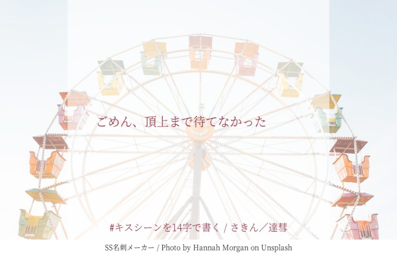 _sakin67☆quiet followMOURNING #キスシーンを14字で書く、で書いたものです。私、このタグ大好き!!! show all(+8 images) Tap to full screen (size:910x590).Repost is prohibited Let's send reactions! freqpopularsnackothersPayment processing Replies from the creator Follow creator you care about!☆quiet follow _sakin67MOURNING #キスシーンを14字で書く、で書いたものです。私、このタグ大好き!!! 9 _sakin67MOURNINGついったに上げてた短い話を放り込みました。淳亜樹メインでCPごちゃまぜ 18 related works _sakin67MOURNING #キスシーンを14字で書く、で書いたものです。私、このタグ大好き!!! 9 azu_3925PAST2024/2/7#キスシーンを14字で書く#ぷろおれ☀️🥐 LilyMOURNING大正CoC妄想前に少し流行った「#キスシーンを14字で書く」を大正面子に当てはめてみた 6 msc_tokoSPOILERソプスク#キスシーンを14字で書く保体先生ズ msc_tokoSPOILERステガノグラフィ(ネタバレ)#キスシーンを14字で書く詐称姉妹 ゆーくんDONE #キスシーンを14字で書く 2 msc_tokoSPOILER同居人/馬鹿参り(ネタバレ)#キスシーンを14字で書く金魚鉢探偵社 azu_3925PAST2024/2/7#キスシーンを14字で書く#ぷろおれ🥃👑 ceriseonbunburyDONEHMスタフェス展示品②『キスシーンを14字で書く』エアーですが。同じ星空の下、別々に旅する二人が眠る前に思うこと。自覚ありヒュンケル×自覚なしマァムの両片想い時空です。Ⅰ sideヒュンケルⅡ sideマァム 2