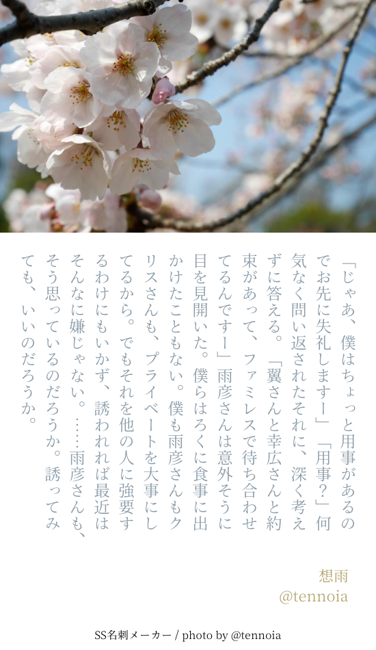 てんの☆quiet followDONE想雨が付き合うまであと84日 #100日想雨 #想雨 thinkingOfTheRain Tap to full screen (size:550x950).Repost is prohibited Let's send reactions! freqpopularsnackothersPayment processing Replies from the creator Follow creator you care about!☆quiet follow てんのMEMOレプリカントの葬列HO1怪盗 鴫咲 鈍(しぎさき にび) 34 てんのMEMOTHESEUSHO1:藤花 志吹(ふじはな しぶき) 27 てんのMEMOポラリス落つHO2:セオドア・マッキンリー 15 てんのMEMOサイレン清掃会社HO4:桃竹 夾香(とうちく きょうか) 13 てんのMEMOヤドリギあやかし探偵社(氷椛)HO狐 梅月 侘助 10 てんのMEMO天啓劫火HO2:見冠 千日(みかむり ゆきひ) 12 related works てんのDONE想雨が付き合うまであと73日 #100日想雨 てんのDONE想雨が付き合うまであと66日 #100日想雨 てんのDONE想雨が付き合うまであと70日 #100日想雨 てんのDONE想雨が付き合うまであと74日 #100日想雨 てんのDONE想雨が付き合うまであと68日 #100日想雨 てんのDONE想雨が付き合うまであと72日 #100日想雨 てんのDONE想雨が付き合うまであと67日 #100日想雨 てんのDONE想雨が付き合うまであと71日 #100日想雨 てんのDONE想雨が付き合うまであと69日 #100日想雨 recommended works てんのDOODLE褒められると調子に乗るタイプなので同棲想雨をもう一つ。たぶん10年後ぐらい。 てんのDONEマシュマロでいただいた卵かけご飯食べる想雨です。 てんのDOODLE11月11日が鮭の日だったという話を聞いてクリ雨。 てんのDONE想雨が付き合うまであと96日 #100日想雨 てんのDONE想雨が付き合うまであと79日 #100日想雨 てんのDONE【P雨】チョコレート #週刊チャレンジ 4 てんのDONE想雨が付き合うまであと73日 #100日想雨 てんのDONE想雨が付き合うまであと72日 #100日想雨 てんのDONE想雨が付き合うまであと66日 #100日想雨
