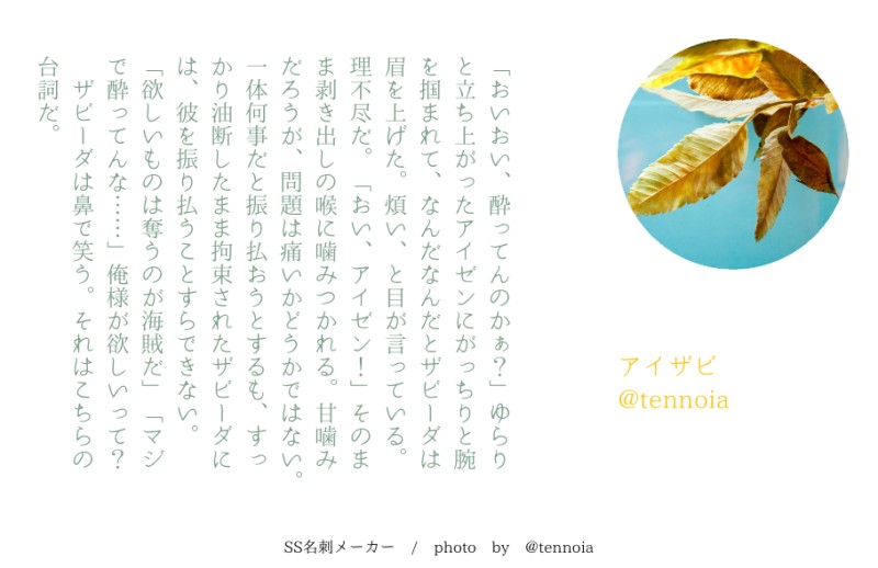 てんの SSログ置き場と最近はTRPGの差分とか落書きとか。Twitter:@tennoia(二次)/@tenno_trpg(TRPG) ☆quiet follow Yell with Emoji Tap the Emoji to send POIPOI 268