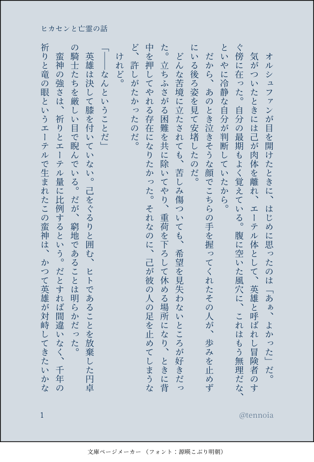 てんの SSログ置き場と最近はTRPGの差分とか落書きとか。Twitter:@tennoia(二次)/@tenno_trpg(TRPG) ☆quiet follow Yell with Emoji Tap the Emoji to send POIPOI 268