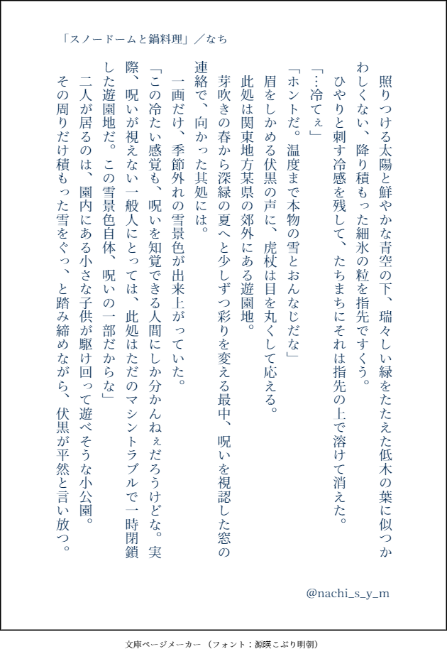 京也/なち☆quiet followDONE「スノードームと鍋料理」/なち全年齢雪をテーマにしたお話。季節外れの雪が降る怪異に対峙する二人は…。 #143_ITFS_PARTY #虎伏 ItaFushi show all(+7 images) Tap to full screen (size:630x928).Repost is prohibited Let's send reactions! freqpopularsnackothersPayment processing Replies from the creator Follow creator you care about!☆quiet follow 京也/なちDONE「夏のはじめの花火と蛍」/なち全年齢単独任務後、離れた場所の虎杖を想う伏黒の話。 4 京也/なちDONE「サマーナイトソーダ」/京也全年齢夏の夜にデートする二人の話。 3 京也/なちDONE「スノードームと鍋料理」/なち全年齢雪をテーマにしたお話。季節外れの雪が降る怪異に対峙する二人は…。 8 京也/なちDONE「うちにかえろう」/京也全年齢冬をテーマにした短いお話。未来IF。呪術師として活躍する二人。 4 related works sukufushisukiPROGRESS頑張れ頑張れ viikaviDONESupport me and get the full version💗 : www.patreon.com/viikavi asakawachangDOODLE虎伏🔞描いてみました… hijirisouDOODLEカッコいい虎が描きたかった…という事で虎伏のちょっとHなのとキスしまくってるのを2枚ポイピクに置きました。久しぶりだ~。 2 tentenTRAINING虎伏エロまんが。恐ろしく下らないけどみんな考えたよね!?というネタ 2 muyehexuanPROGRESS啾啾海鲜 5 tentenDOODLE虎伏練習 knoitafushiDOODLEコラボ衣装は本当にエロすぎる。(password:18↑?) 5 とうふDONE🐯🐺前回の続きみたいなもの情緒不安定/喜怒哀楽激しい広い心で読んでもらえればパス y or n 8 recommended works ② 子CAN’T MAKEおっぱいの日……オチない 2 ② 子DOODLE何回でもやってほしい心臓の確認 3 mayogataranaiDOODLE推しカプのえっち事情 お借りして記入しました a_ki_no_dayoDONEお題箱より、背面🚉🍱です!!モロなので注意〜!!※18歳以下閲覧禁止18↑? 3 A.SDONE【虎♡伏WEBオンリー展示】●●しないと出られない部屋※付き合ってる虎伏 4 京也/なちDONE「うちにかえろう」/京也全年齢冬をテーマにした短いお話。未来IF。呪術師として活躍する二人。 4 bboaDOODLESuspended Congress 益生菌DOODLE本誌199虎伏 Mino_llmDOODLESideMの絵 65
