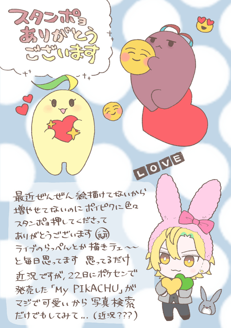 kinacosmo☆quiet followDONE感謝のお気持ちです Tap to full screen (size:1748x2480).Repost is prohibited Let's send reactions! freqpopularsnackothersPayment processing Replies from the creator Follow creator you care about!☆quiet follow kinacosmoDOODLE謎すぎるコラボ kinacosmoDONE2024ひふみの日🦊 kinacosmoDONE2024ハロウィ〜〜〜〜ン kinacosmoDONE2024どひふの日おめでとう kinacosmoDOODLEおま苦の元ネタを知らない kinacosmoDOODLE既に5億回くらい描かれていそうな最新ドラパイメージ図 recommended works dinexinfoGIVE UP前あげた長編?のボツどひふシーン #どひふ 304_microTRAINING #どひふ #ヒプマイ #ヒプノシスマイク ぽてちんDONEクレリリ新刊表紙(どひふ) 式×骨DOODLEポイピク初めて使ってみた('ω')全年齢ではあります。ツイートにも載せたすれ違いシリーズです。※ひふど、どひふどちらでも捉えてOKです。 2 しまのDOODLEはっぴーばれんたいん!バトルお疲れ様! @7_kankankan_100DONEどひふ版深夜のワンライのお題「貯金」で書いたどひふです。中学生時代。中学生の頃、一二三はある物を見つけてしまった。 独歩の部屋の棚の奥、惑星や鉱物、植物や生物の図鑑の後ろに隠れるようにそれはあった。夏休みの自由研究の調べ物に独歩の本を借りようとしただけだ。探るつもりはなくて全く偶然の事だったので一二三はなんの悪気もなくそれを図鑑の後ろから取り出す。クッキーかチョコかが納まっていただろう繊細な花柄が描かれた缶箱。そのままにしておけなかったのは『一二三の……』と太字の油性ペンで書かれた文字を見つけたから。その先に続く文字があるらしいが本に隠れて見えなかったのだ。 独歩はこんな所に『一二三の……』何を隠しているのだろうか。もしかしたら悪口かもしれない、と一二三はちょっとヒヤリとした。学校で時々独歩にしつこくくっつくなと怒られたりするのを思い出すと、その可能性はあり得る。 でも仕方がない。独歩にくっついていると落ち着くし、いないとなんだか寂しくてやっぱり側に行ってしまう。眠る時にお気に入りのぬいぐるみを離さない小さい子のようなものなのかもしれない、と一二三は自分で思っていた。これが大人だったら、タバコやお酒のようなやめたくてもやめられないものだろうか。ま 2391 ニノ式 啓水DOODLE忘羨ワンドロワンライの素敵なお題お借りしました。1時間+? 今回も大遅刻です(;´Д`)旅に出るとき、藍湛は決してこんな髪型ででかけませんが、髪を描いてたら楽しくなってしまったので、欲望のままに描きました。反省はしていません( アコヤDOODLEおずおず…(※2枚目以降キスしてますのでご注意を)2021.08.26 3 アコヤDONE👔🥂今年もお世話になりました。良いお年をお迎えください。2021.12.30