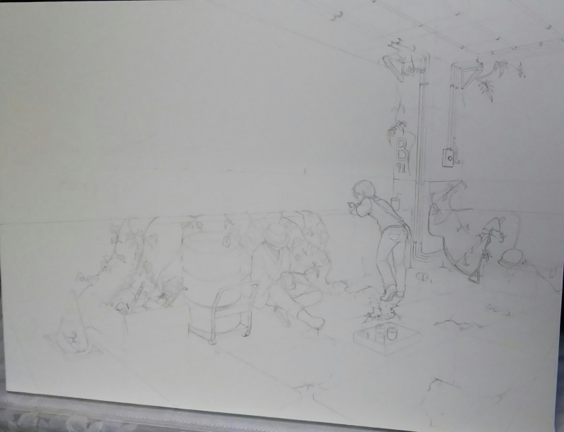 どうにかしなければと悩むA2サイズのイラスト