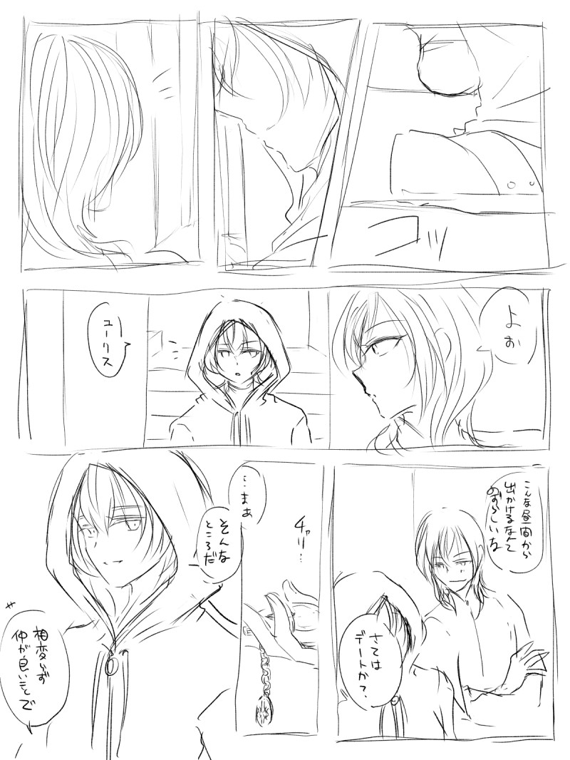 ディミレト漫画を即興で適当に描いたけど途中で思いつかなくなって飽きたやつのラフ供養。