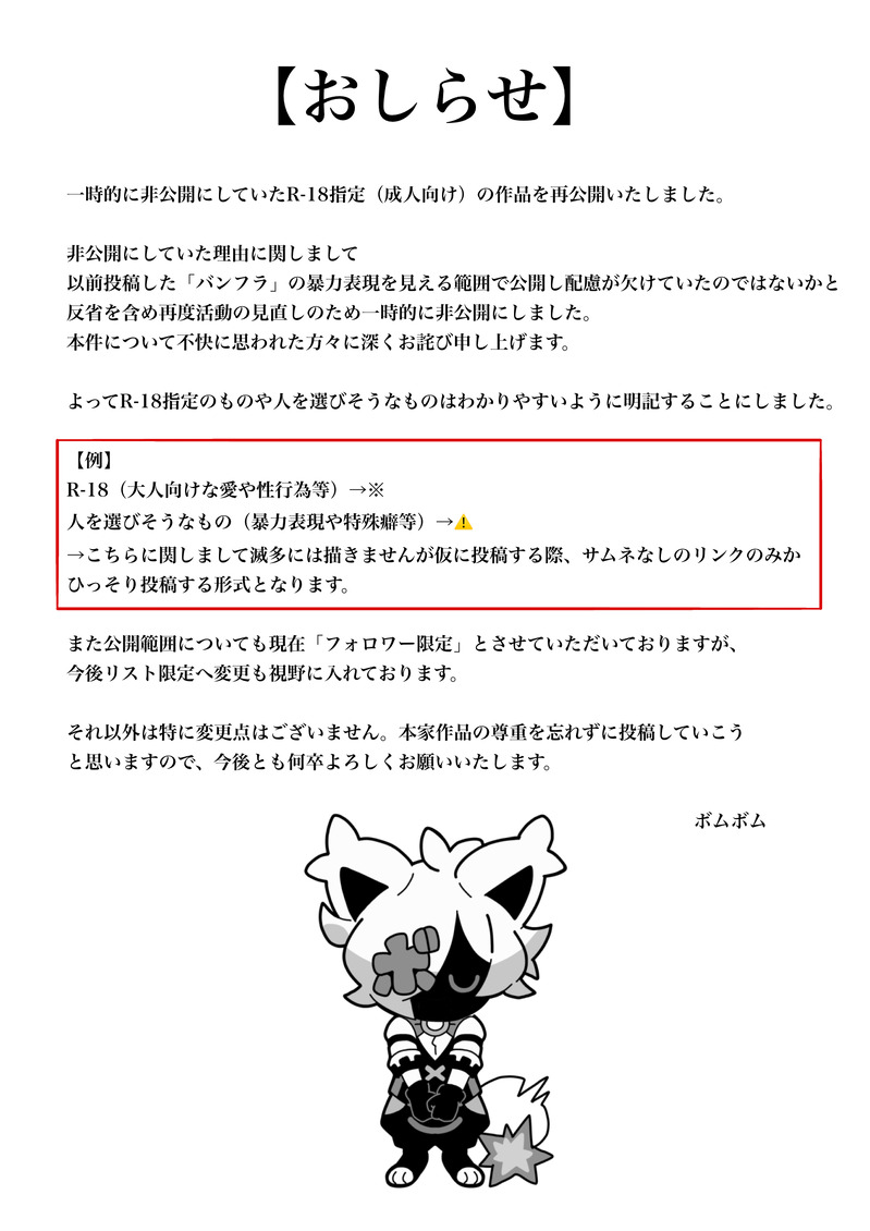 ボムボム ボムボムです。表で出せないな…って思うものを出してます。無断転載/無断利用絶対禁止。Repost is prohibited.※R18指定のものや人を選びそうなものはわかりやすいように明記することにしました。例:R-18(健全な性行為等)→※/人を選ぶもの(暴力表現や特殊癖等)→⚠️ ☆こそフォロ 絵文字で応援する ポイポイ 29