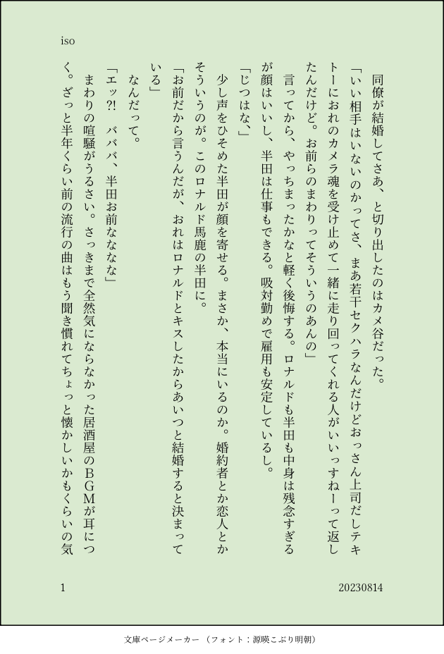 リハビリに書いたロナ半とカメ谷