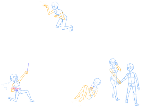 胴体ラフ4人(一人は手を繋いでいるポーズなのでポーズ全景がわかるようにしたら5人描いたみたいになったけど)