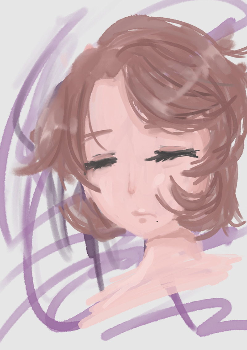 下書きなしでにじみ水彩ブラシ使ってみたけどむずい、色めちゃくちゃ混ざるし筆圧めちゃくちゃ影響する