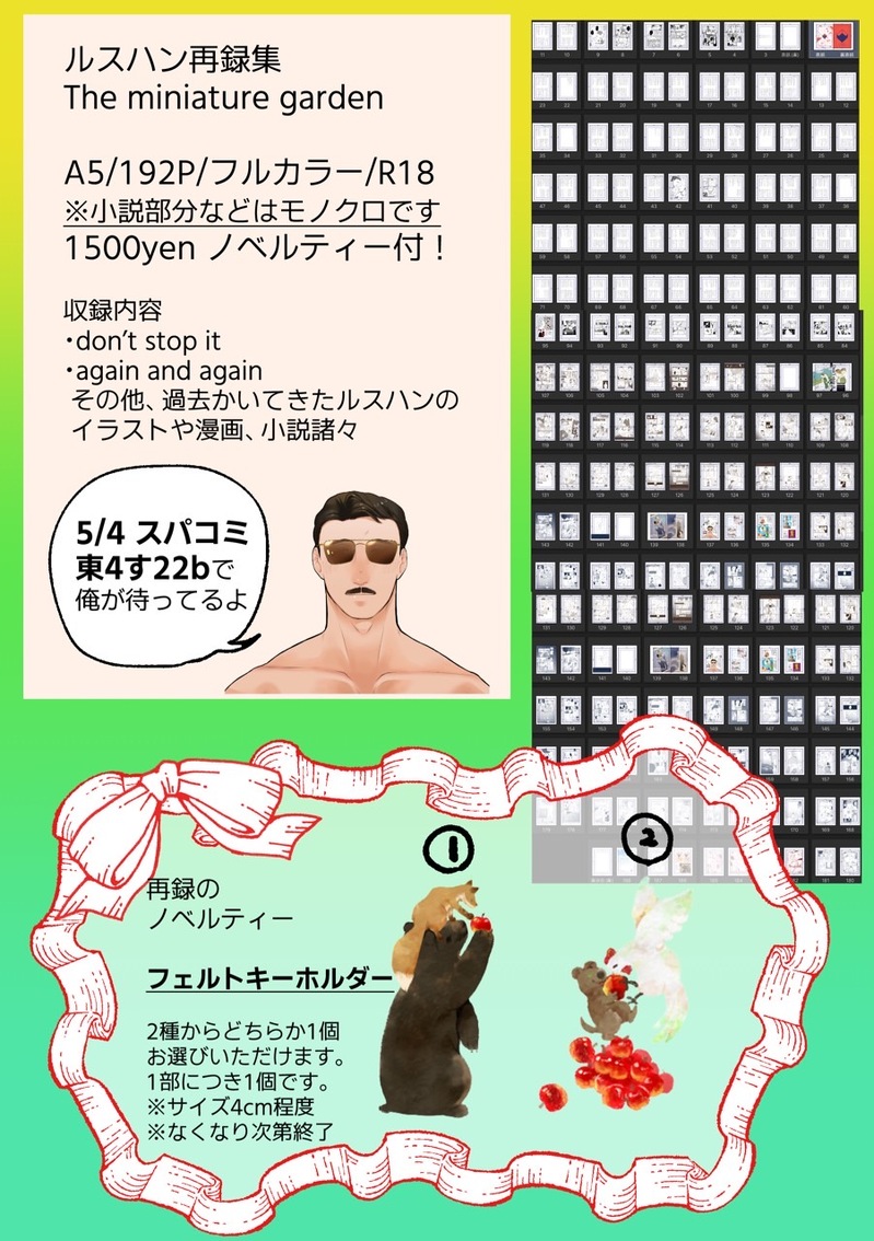 シロ坊☆quiet followMENU5/4スパコミ、ミラクルミッション内RH恋でのお品書きです。ルスハン再録集が新刊(収録されているのはルハ1冊目、二冊目の発行後既刊が現在ないもの)、その他既刊各種、キャニスター缶になります。詳細は画像をご覧ください。プチオンリー楽しみですね!!!よろしくお願いします!パスは7文字です。 #ルスハン show hide show all(+4 images) Tap to full screen (size:901x1278).Repost is prohibited Let's send reactions! freqpopularsnackothersPayment processing Replies from the creator Follow creator you care about!☆quiet follow シロ坊MENU2025/10/4 ムパラで頒布予定のルスハン新刊A5/表紙込み72P/表紙全面箔/R18/700円ルスとハンが神父AUです。ミステリー?ちょっとホラー?な雰囲気はありますが、ハピエンのつもりで描いてます!ハンがいる教会に新しく赴任してきたルス、話す内に徐々に惹かれていくルスだが…?エロシーン何回かいれて頑張りました!よろしくお願いします!ムパラ後はさわまるにて通領予定。英字3文字 16 シロ坊DONEXで公募しました「私の描いてもいいルス(ルスハン)ください」シリーズでした!格好いいルス描きたいな…という主旨で、リクエストしてくださった皆々様ありがとうございました!掲載は順不同です。パス:7文字 7 シロ坊DONEレカペ2406で展示したルスハンのルス誕生日(フライング)漫画です。ルスが目一杯幸せでありますように!!!ルスハン幸せでありますように!!!Pass:7文字 7 シロ坊DOODLEレカペ2406にて展示したオペチュンと消耗品3のCOギャグマンガです。※CP要素なし!のはずCOたのし~~!!PASS:7文字 シロ坊MENU5/4スパコミ、ミラクルミッション内RH恋でのお品書きです。ルスハン再録集が新刊(収録されているのはルハ1冊目、二冊目の発行後既刊が現在ないもの)、その他既刊各種、キャニスター缶になります。詳細は画像をご覧ください。プチオンリー楽しみですね!!!よろしくお願いします!パスは7文字です。 5 シロ坊DONE2403さわマルでの展示漫画です。消耗品3よりスマソン。パスは7文字。描いてて気付いたのですが猛獣使い系受けが好きなのかもしれない……。あっ諸事情(という名のコスパ)で刺青全てない状態です!!ご承知おきください……! 4 related works fuji02TGMDONEルスハン R18Pass:Mach(マッハ)○○(数字2文字)ベッドじゃないところで辛抱できずに致してしまうお互いに夢中なルスハンもいいと思います!ドッグタグはセクシーアイテムだって洋楽も歌ってたので、ドッグタグつけっぱなしでするのいいですよね。声我慢するためにしがみついちゃうハンとか見たいな~。髪を崩すと誰だかわからないな~! 秋日子DONEルスハンで睡眠❤️❤️❤️。後半攻めフェとかもろもろ、割と性描写ありますので、苦手な方は自衛下さい。かっこいいルスはいません。あと2人が互いに相性で呼びあってるオリジナル設定あり。パスワードはslow ○○○○ 後半小文字四字 8794 otosonDONE2025年8月17日インテでのルスハンペーパーラリーの内容展示。昔何ルハ。いつか出したい本のサンプルもどきです。書きかけを切り貼りしまくったので、伝わりにくかったり元々ない情緒がより少なくなっていたりで恐れ入ります。↓これをハングマンくん視点で書いてみております。https://poipiku.com/1760670/10227729.htmlpw:ルスハン好きな方はyesでどうぞ! 9147 シロ坊DONEさわマル RH別館開催おめでとうございした!!!!嬉しい素晴らしい!!!!ささやかなものですがルスハン展示物として公開していた物です。・アウトローAU全然設定物感じられませんが……とある荒くれ者が蔓延る街で何でも屋を生業とする2人……の出会い編。フェニはこの街の警察官。1㍉も戦闘シーン出てきてないのですがいつかガンアクションかきたいです……PASS:英7文字 6 Hatchimaru_INFO【R18】あぶ空発行済 ルスハン本サンプルです。パス:18歳以上?(yes or no)+sで始まる5文字 8 くしかつINFO新刊のお知らせです!『恋じゃなきゃ 愛じゃなきゃ』(A5/62p/R18)付き合ってないけどハングマンと体の関係を持っているルースター。ある日ひょんなことから参加した女子会で、自分はハングマンにとってただの都合のいい男なのでは?と気づいてしまう。あいつの都合のいい男になんてなってたまるか!と決意するもののハングマンに翻弄されてしまい……みたいなお話。ゲストでゆにさんに漫画を寄稿していただいてま 17516 カナオDOODLEルスハン背面側位パスワード:英字3文字+数字3文字 amane24063618PROGRESSpassはアルファベット三文字あぶ空&さわマル新刊 おとぎの国のルスハン R18P52/A5/¥850おとぎ話キャラのルスハンエロ本です。頭空っぽにしてお読み下さい。結構えぐく受けが喘いでいます。(アヘ顔、結腸責め、眠姦、等)全編ハピエンです。 15 ド助平シコノ助DONE⚠️👜君がカントボーイのルスハン🔞3枚目は裏でupしたキスしてるだけの絵パスワード:「you ○○○○ good」+英5文字の9文字 3