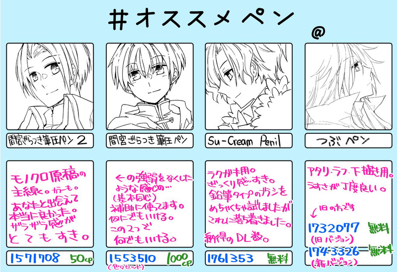 やと@☆quiet followDOODLE #オススメペン(クリスタの自分が使ってるスキスキブラシ達) #オススメペン recommendedPens #花帰葬 #クリスタ crista Tap to full screen (size:1317x905).Repost is prohibited Let's send reactions! freqpopularsnackothersPayment processing Replies from the creator Follow creator you care about!☆quiet follow やと@SPOILER遅ればせながら令和7年度パンフレットをクリアしたので…走り書き… 2 やと@DONEちょっと前に上げたラクガキマンガをちょっとだけ清書&修正しました。(インテの無配ペーパーです) 4 やと@DOODLE何をどこに上げたか上げてないかがもうよく分からない状態に…(被ってたらすみません)順番適当です、いろいろ描いたものまとめ! 10 やと@DOODLE学パロみたいなアレで夏祭り。みんないる。(背景と彼女の言葉は各々脳内変換を…!)※『シナイドリ解体センター』『少年の声、少女のうた』のネタあり※NL(七荒・蒼花)要素あり 3 やと@SPOILER「少年の声、少女のうた」の衝動描き(パスはラストワード) やと@DONE流星くん②(※完全な捏造+妄想+幻覚です) 3 related works 青神龍樹DOODLEあけましておめでとうございます。今年もよろしくお願いします。 チャンプルーDONE眼帯の喰種 青神龍樹DOODLE甘ロリ魔法少女サムラーイクリスタの自動彩色でワンピースの色決めてもらいました。羽や眼、ペットの色も面白い色使いなのでそのまま使用。それ以外はベタ塗りです。 2 琴音〜2023年03月までDONE振り返ればそこにライオネル/キングドr♂ audrey1967DOODLE 青神龍樹DOODLE忘れ去らぃぇた者達(もんだち)が降りて来(く)ンだネ南無阿弥陀仏着色はPaintsChainer「かんな」さん+クリスタで加工。 2 natsuyaki_yuDONE麦藁の魔女#イラスト #デジタル #オリジナル #クリスタ #魔女 2 ツムちゃんDONE調査兵団🪽クリスタ初クリスタですφ(・д・。) audrey1967DOODLE recommended works hdkkwiiyPROGRESS #FGO KARI@意外と更新してるDONE #FGO #段蔵 #二次創作いいとこのお嬢さんみたいになってもうた nillDOODLE 11 Amei_Sensou03DOODLEおはよう wakaxxxtaisaPASTぐぬぬサンソン先生と新茶 3 やちよDOODLEFGOのアヴェンジャーズと聞いて【うちのカルデアシリーズ/天ぐだと妖くん】でした。いつ実装されますか????(真顔) muzy_zeroDONEメルトリリスかわいいし、強いので好きです。 neonDOODLE例の軍師、キャスター来て欲しい! nacocoDOODLE何かしら楽しみなことがあるバニヤン