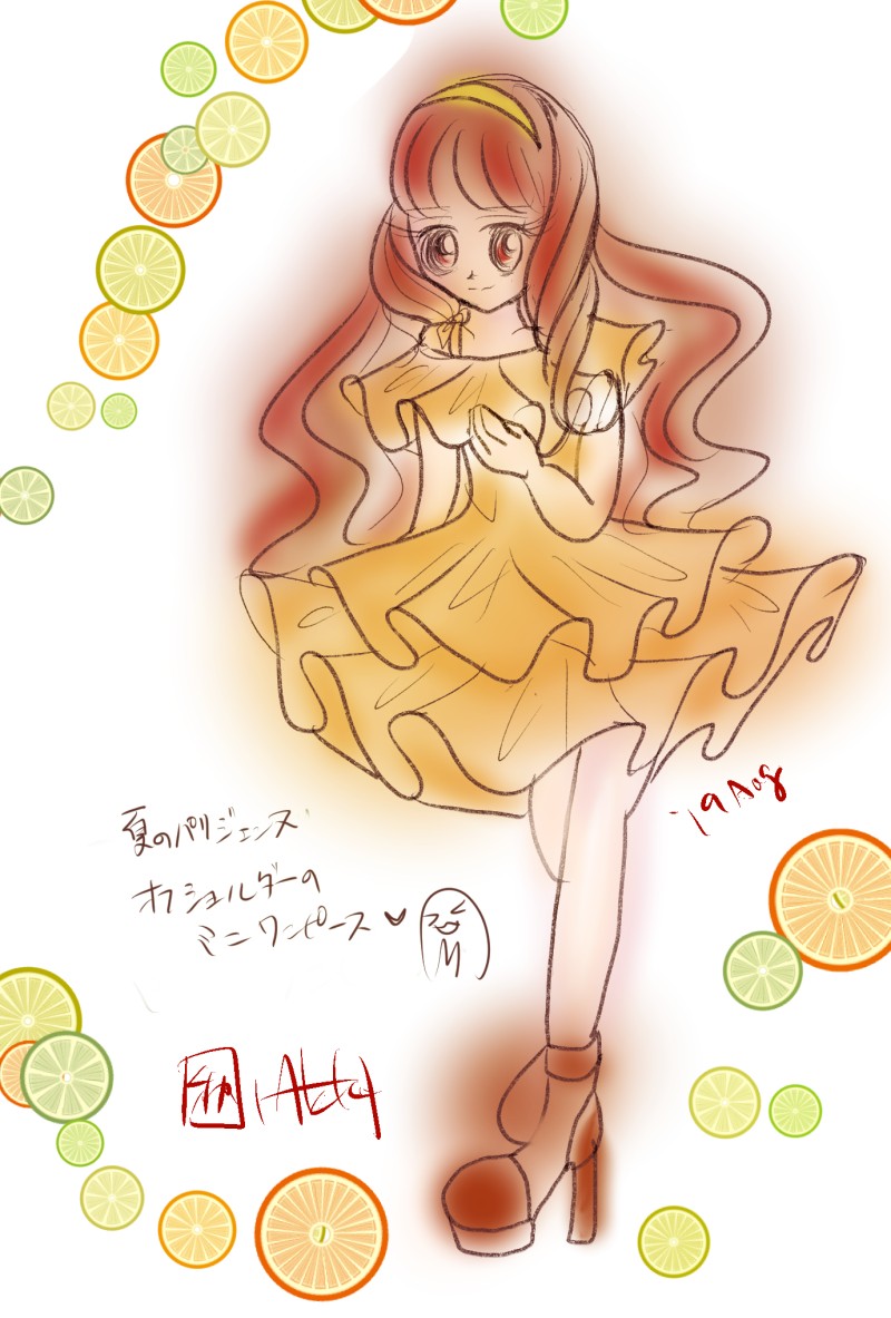 パリの街に居た若い女の子たち、今年の流行はミニ丈のワンピースみたいで沢山のミニワンピ女子を見かけました。1番可愛かったオフショルダータイプ色もシャーベットみたいなオレンジ。をセリカ様に着せてみました。